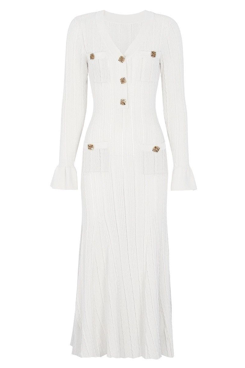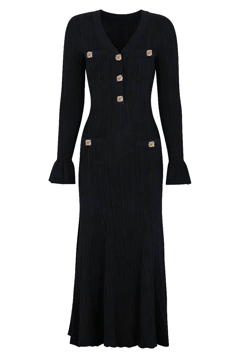 Jessica Bara Fezara Gold Button Long Sleeve Maxi Dress
