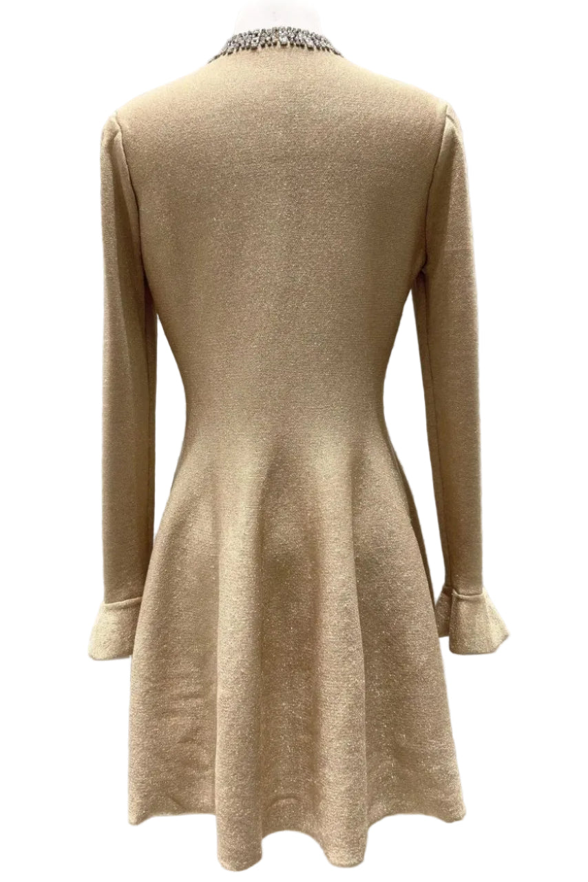 Jessica Bara Zamian Long Sleeve Crystal Button Midi Dress