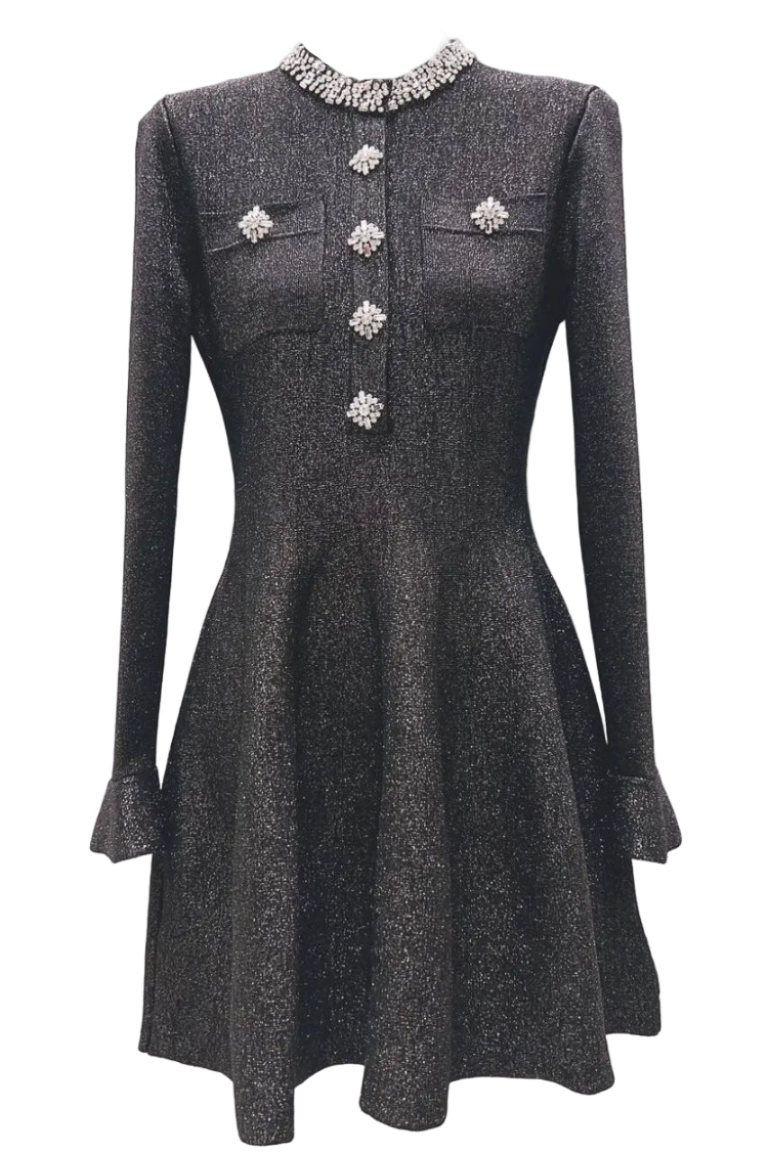 Elevate your everyday elegance with the Zamian Long Sleeve Crystal Button Midi Dress. This stunning piece features shimmering crystal buttons that catch the light with every move, paired with a flattering midi length that works from office to evening. The long sleeves offer versatile coverage while the refined silhouette keeps you looking polished and put-together. Perfect for those moments when you want to feel a little extra fabulous without trying too hard.