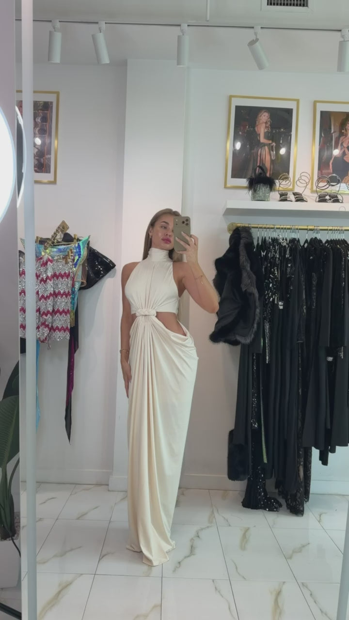 Jessica Bara Avira High Neck Cut Out Maxi Dress