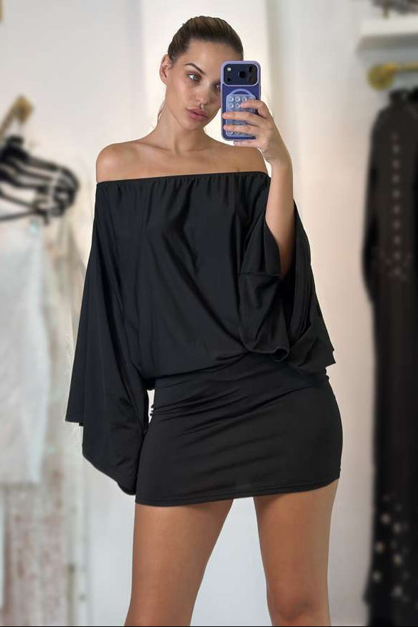 Escape to island vibes with this flirty off-the-shoulder mini dress. The bell sleeves add a romantic, whimsical touch while the relaxed neckline keeps things effortlessly chic. Perfect for warm-weather adventures, casual dates, or whenever you want to feel breezy and confident. Slip it on and let the good times roll.