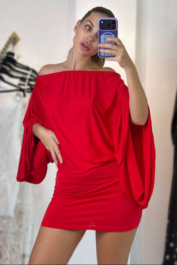 Jessica Bara Bora Off The Shoulder Bell Sleeve Mini Dress