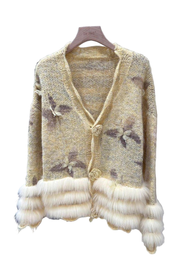 Jessica Bara Ebsie Fur Long Sleeve Butterfly Cardigan