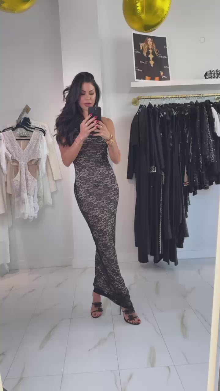 Unleash your inner goddess with the Jessica Bara Amaya Lace Maxi Dress. This stunning dress features intricate lace detailing and a flowing silhouette, perfect for turning heads at any event. Embrace your elegance and charm with this must-have piece.