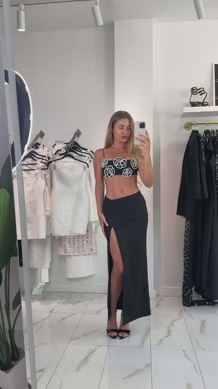 Jessica Bara Crista Flower Top and Slit Maxi Skirt Two Piece Set