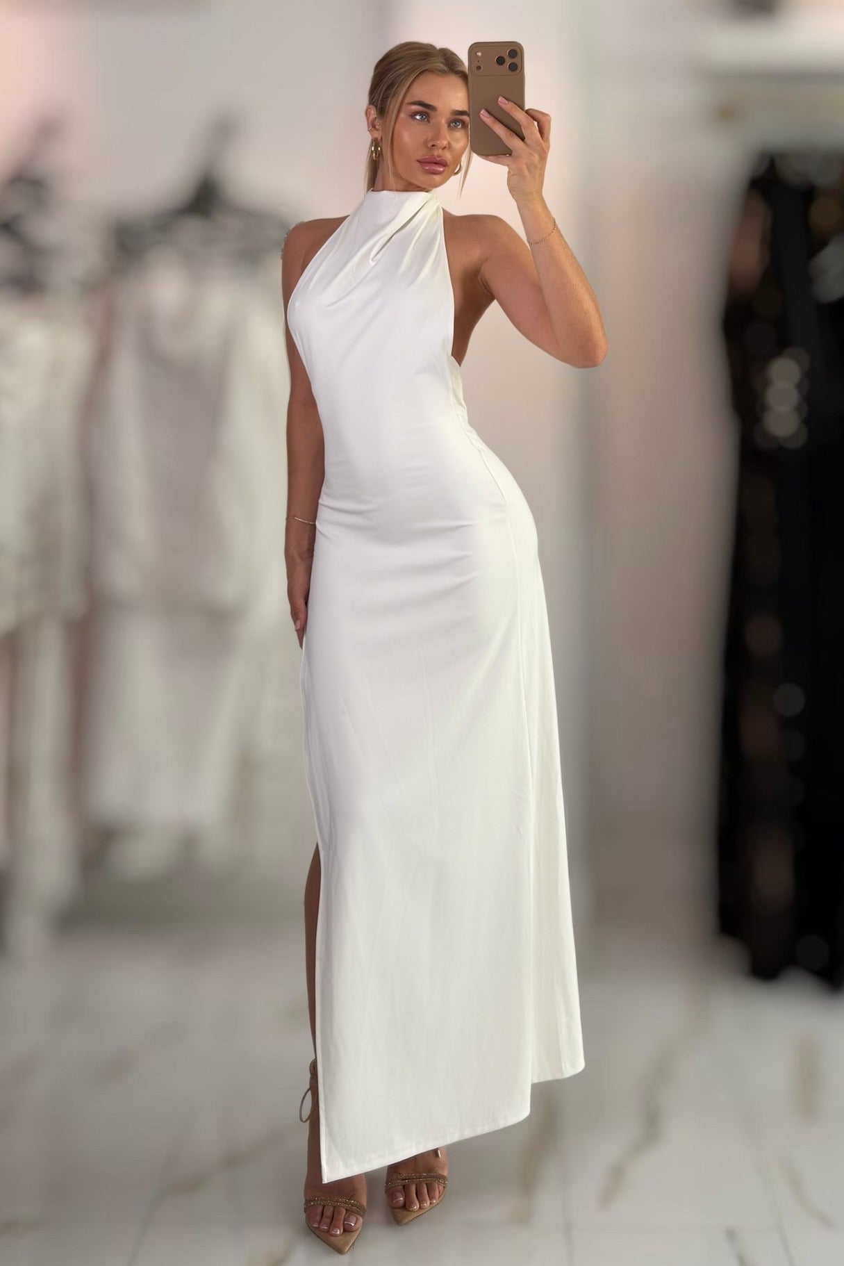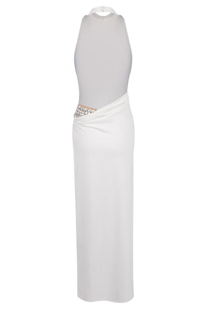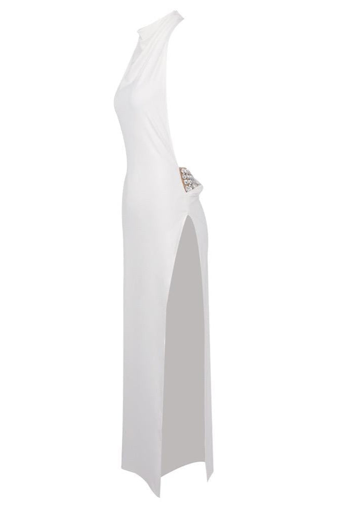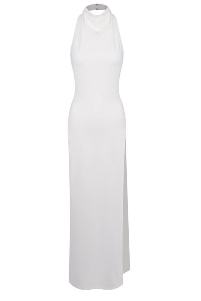 Jessica Bara Siema High Neck Halter Slit Backless Gown
