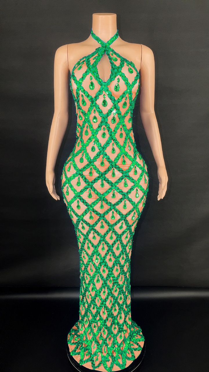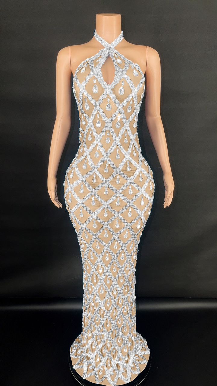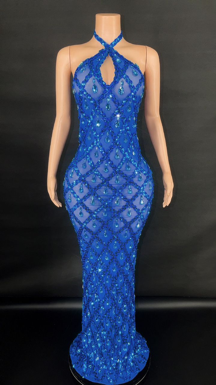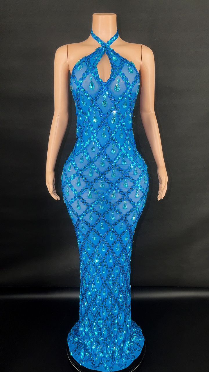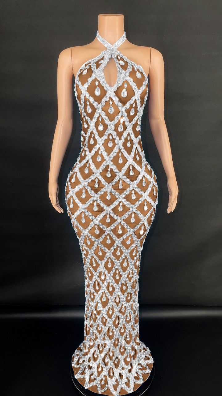 Jessica Bara Yassiera Halter Neck Crystal Gown