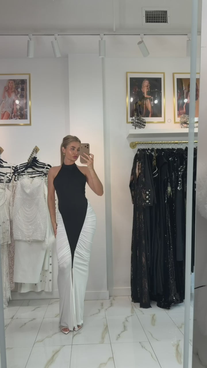 Jessica Bara Zareah High Neck Halter Ruched Maxi Dress