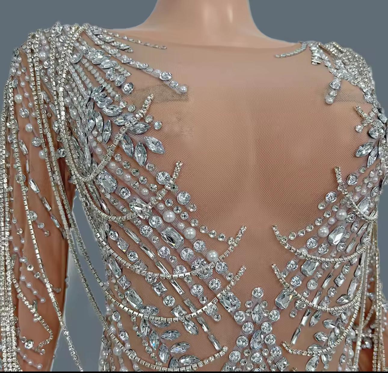 Step into the spotlight with the Jessica Bara Faque Long Sleeve Crystal Fringe Jumpsuit. This dazzling piece features shimmering crystal fringe that moves with you, adding a fun and flirty vibe to every step. Long sleeves balance the sparkle, creating a sleek silhouette perfect for dancing the night away or turning heads at any event. Ready to sparkle and shine? This jumpsuit is your new party secret weapon.