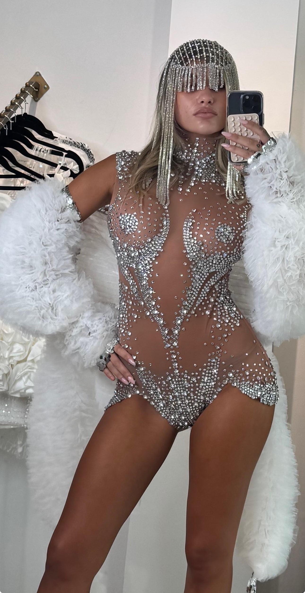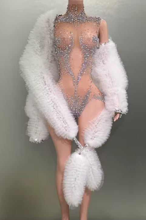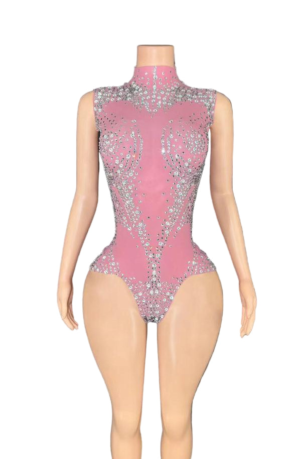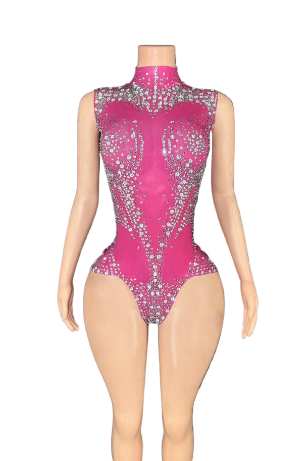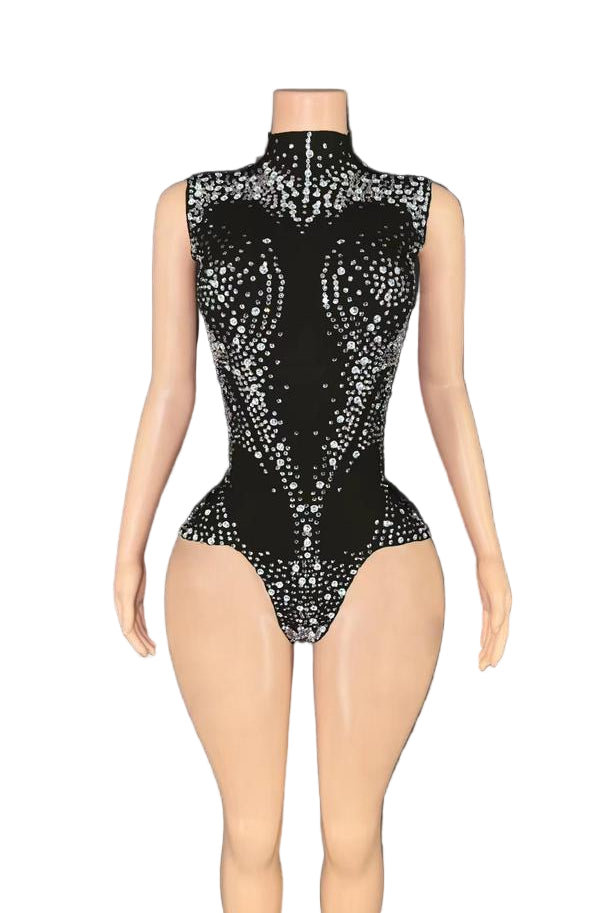 Elevate your style with the Jessica Bara Valena Crystal High Neck Romper. This playful piece dazzles with sparkling crystal details and a chic high neckline, perfect for turning heads day or night. Its sleek fit hugs your curves, making it an ideal choice for a bold, confident look that shines with every move.