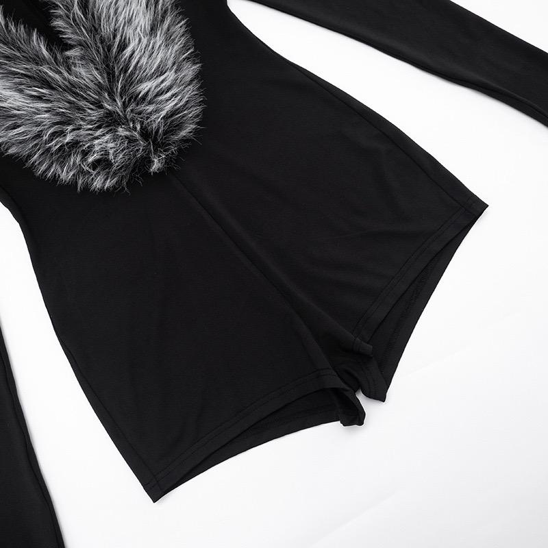 Jessica Bara Veenar Faux Fur Long Sleeve Romper
