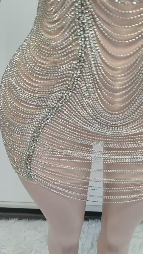 Step into the spotlight with the Jessica Bara Katanie Crystal Fringe Mini Dress. This dazzling mini dress sparkles with crystal accents and playful fringe that moves with you, perfect for turning heads at any party. Its flattering cut combines fun and glam, making it your go-to for unforgettable nights out.