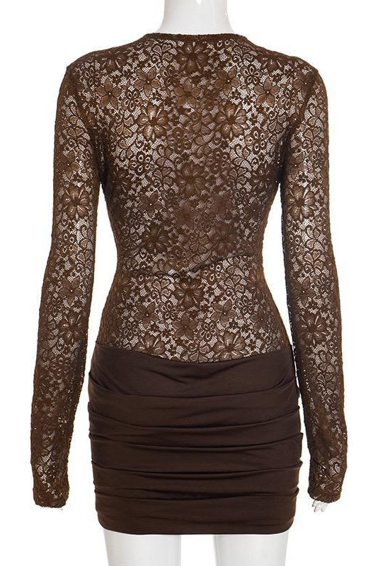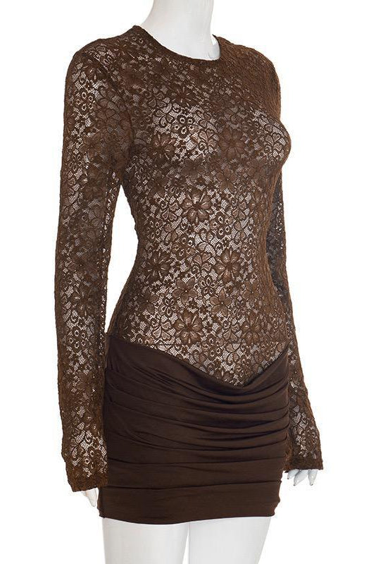 Jessica Bara Adera Lace Long Sleeve Ruched Mini Dress