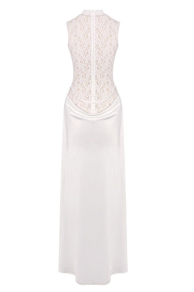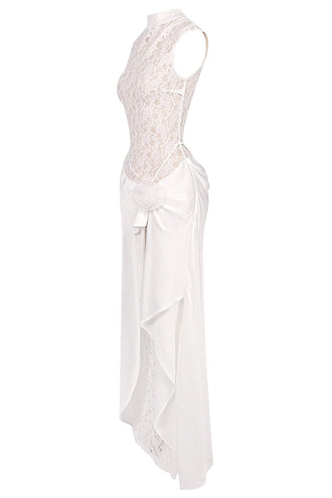 Jessica Bara Sheza Lace High Neck Flower Slit Maxi Dress