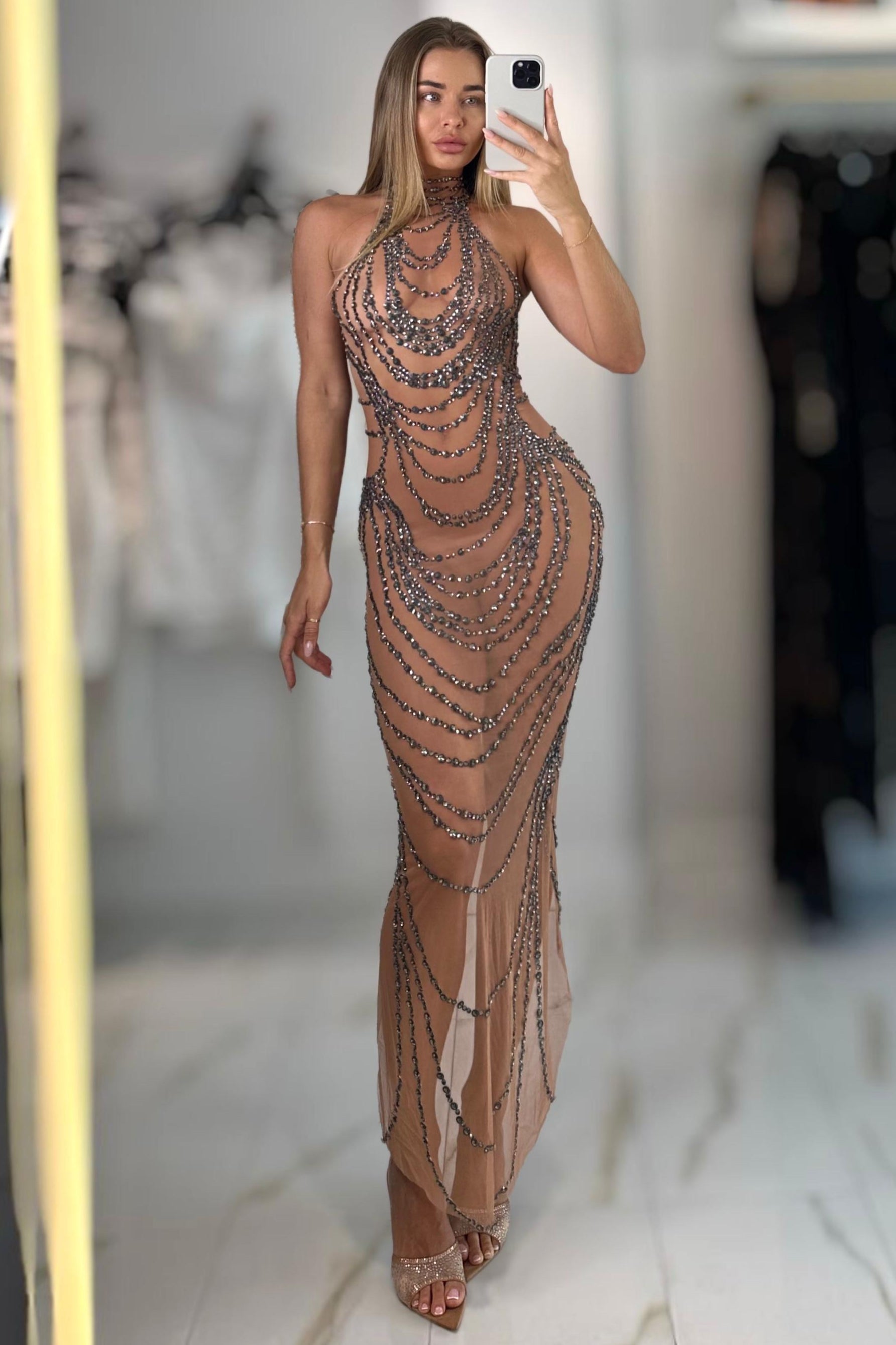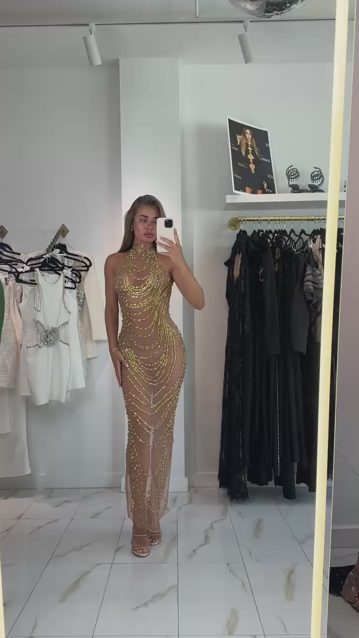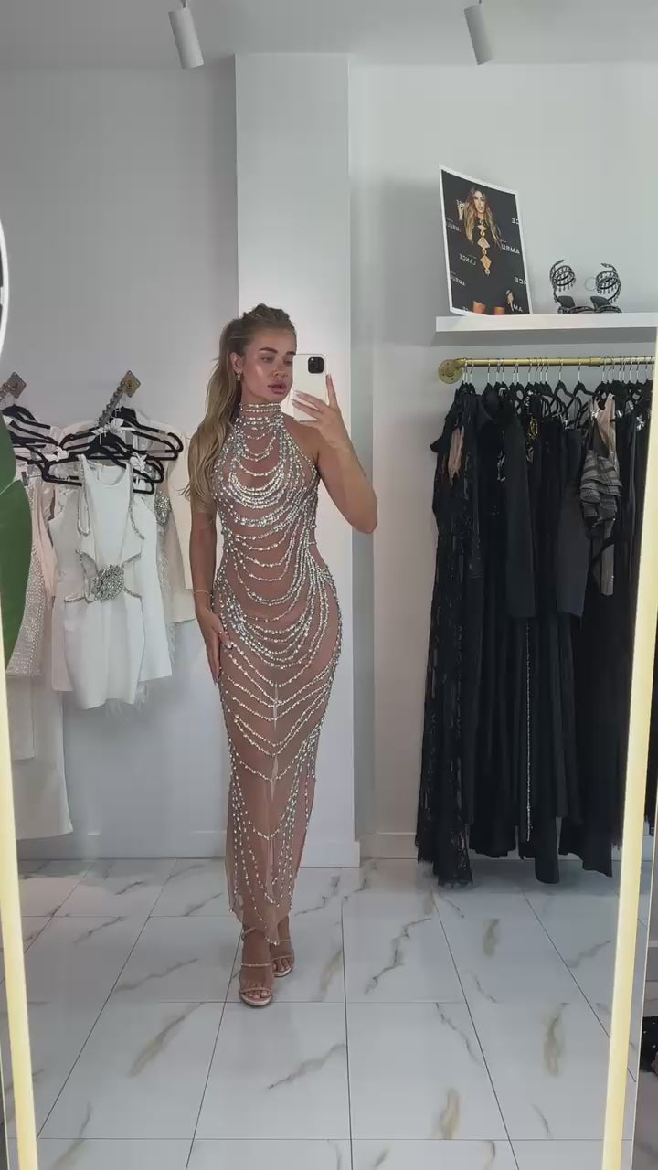 Jessica Bara Antessa Crystal High Neck Gown