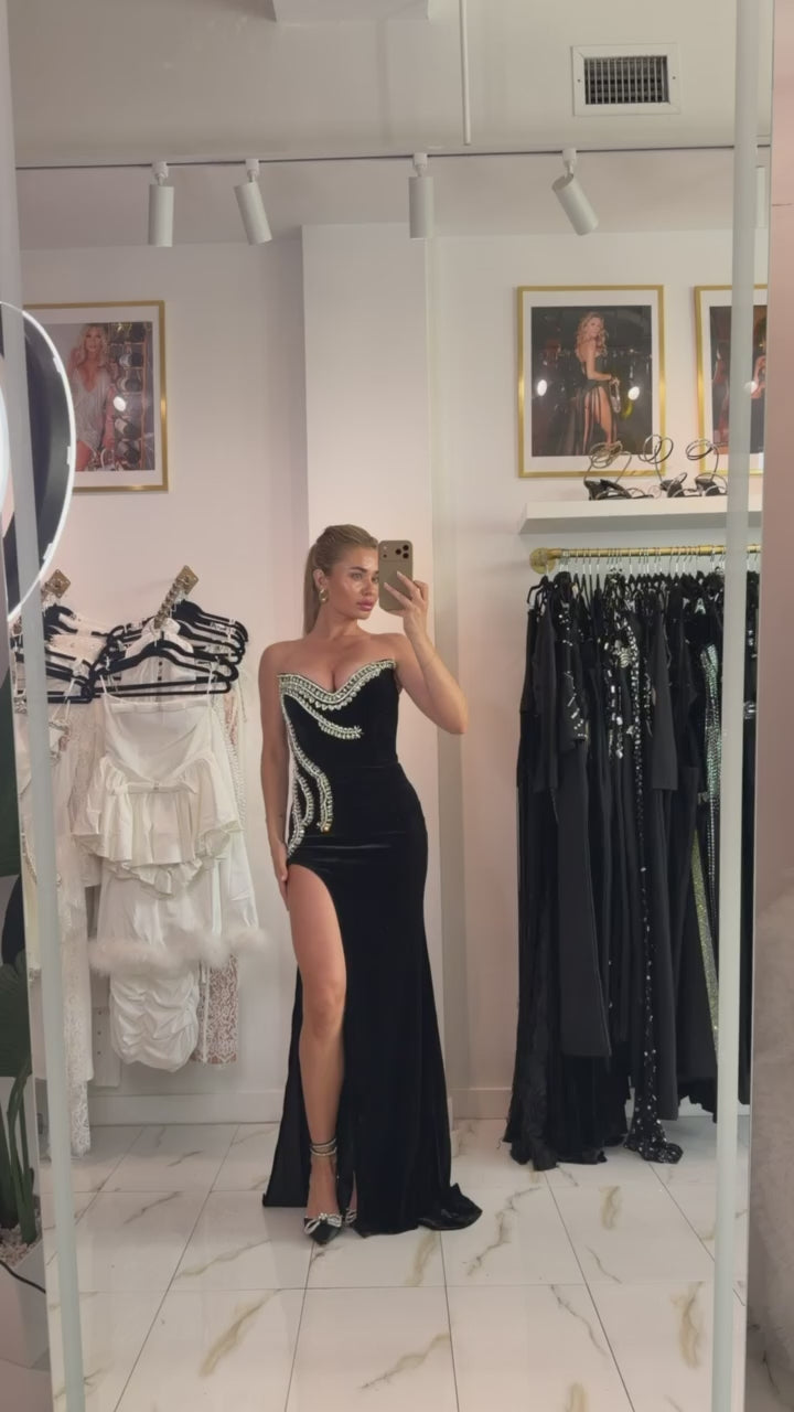 Jessica Bara Emza Velvet Slit Strapless Tube Gown