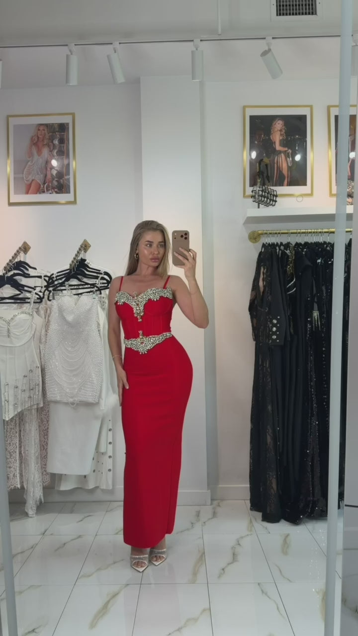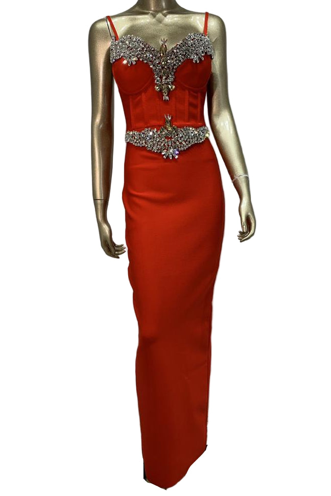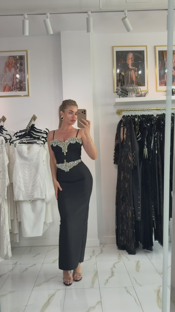 Jessica Bara Itara Crystal Corset Maxi Dress