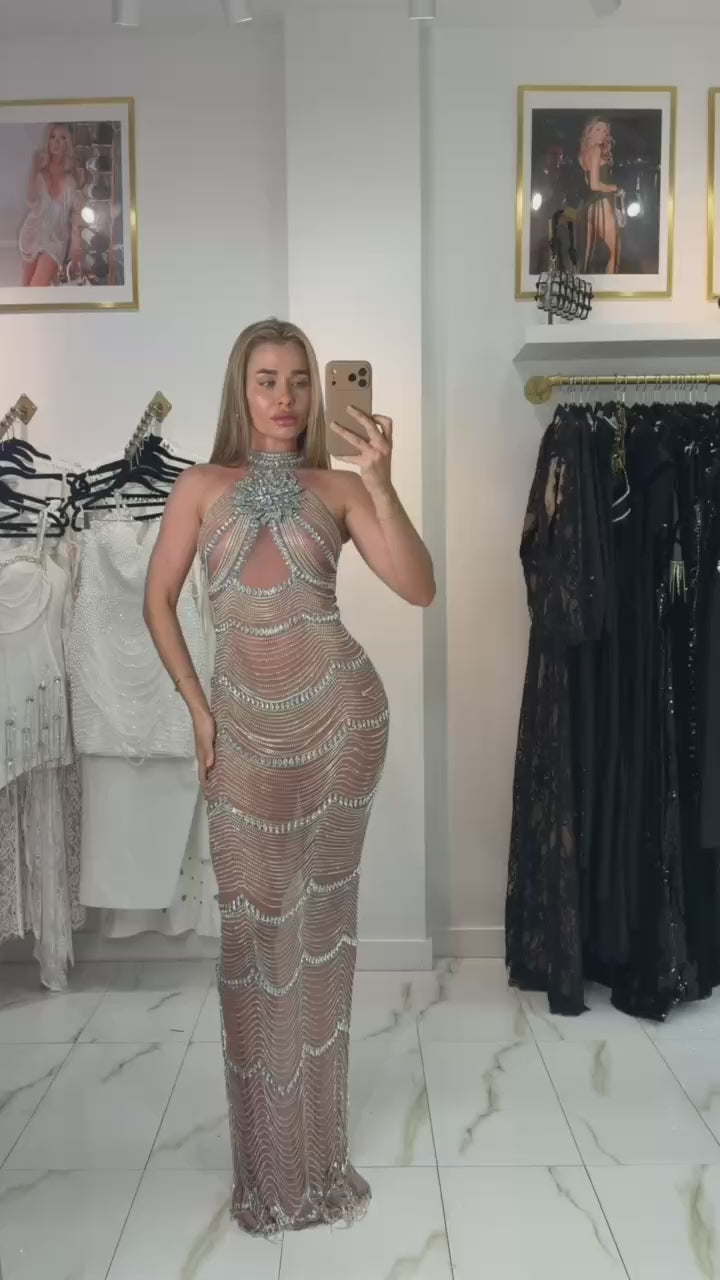 Turn heads in the Sevora Crystal Halter Gown—a show-stopping masterpiece that's pure magic. This glamorous gown features a flattering halter neckline paired with dazzling crystal accents that sparkle with every movement. The flowing silhouette creates an effortlessly chic vibe while the intricate crystal details deliver serious red-carpet energy. Whether you're attending a gala, wedding, or special celebration, this dress lets you shine bright and own the room with confidence and style.