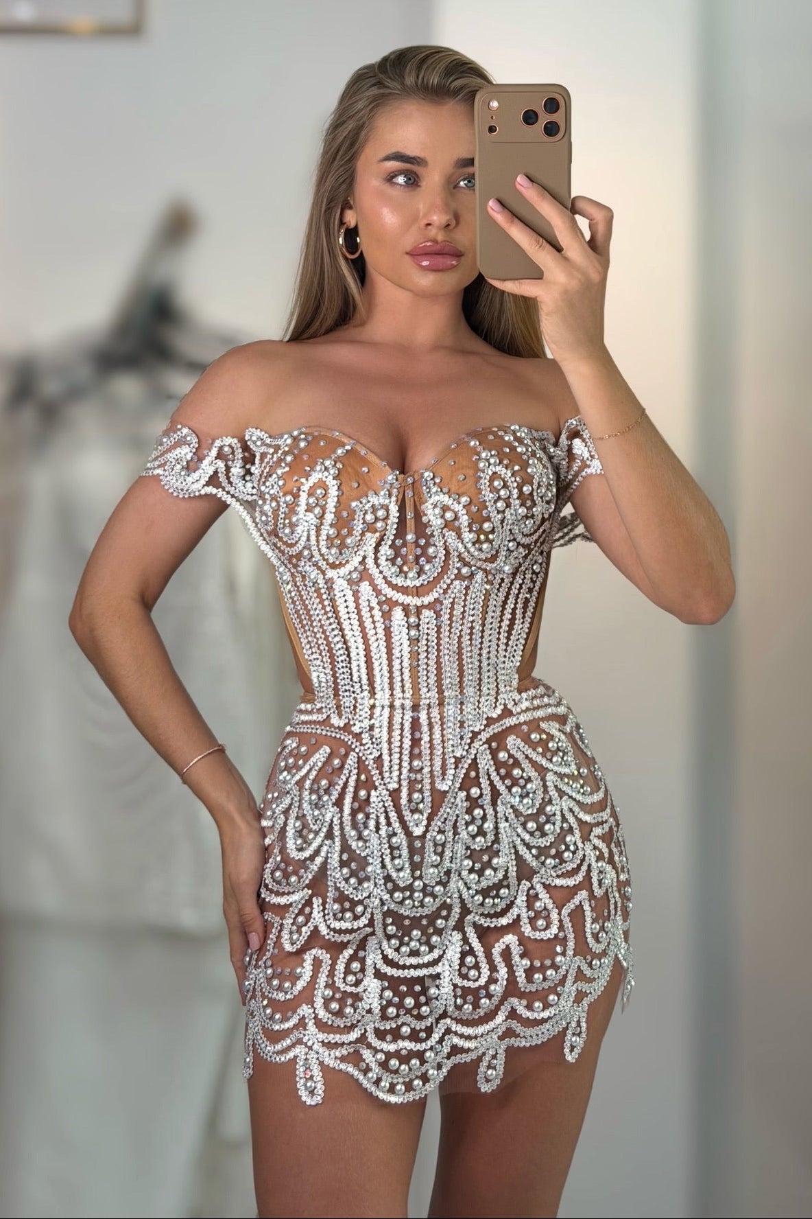 Bare your shoulders and own the room in this stunning Venus 2 corset mini dress. The off-shoulder design frames your collarbone beautifully while the structured corset bodice cinches your waist for a show-stopping silhouette. Perfect for nights when you want to turn heads and feel absolutely fabulous. This mini length keeps things flirty and fun, making it ideal for parties, date nights, or whenever you're ready to make a statement. Slip into confidence and let your style do the talking.