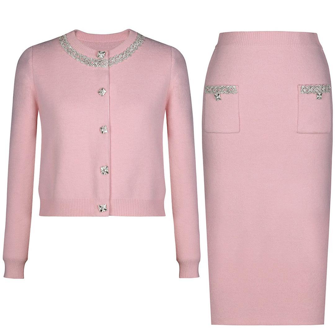 Jessica Bara Hensera Knit Long Sleeve Cardigan Top and Maxi Skirt Two Piece Set