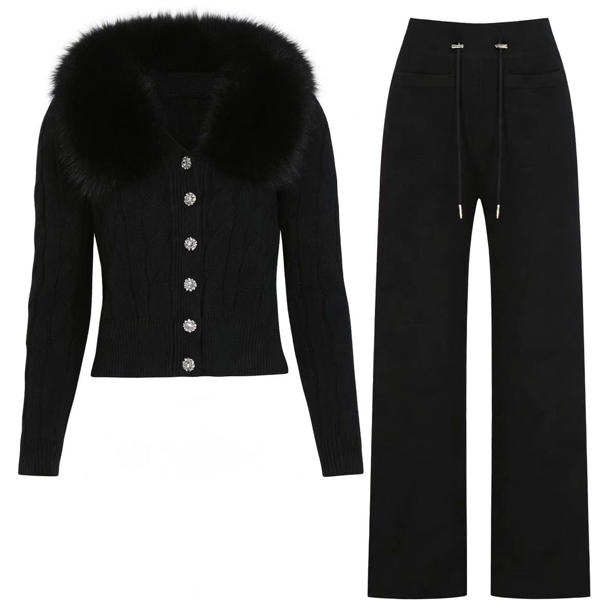 Jessica Bara Miffy Knit Fur Long Sleeve Top and Pants Two Piece Set