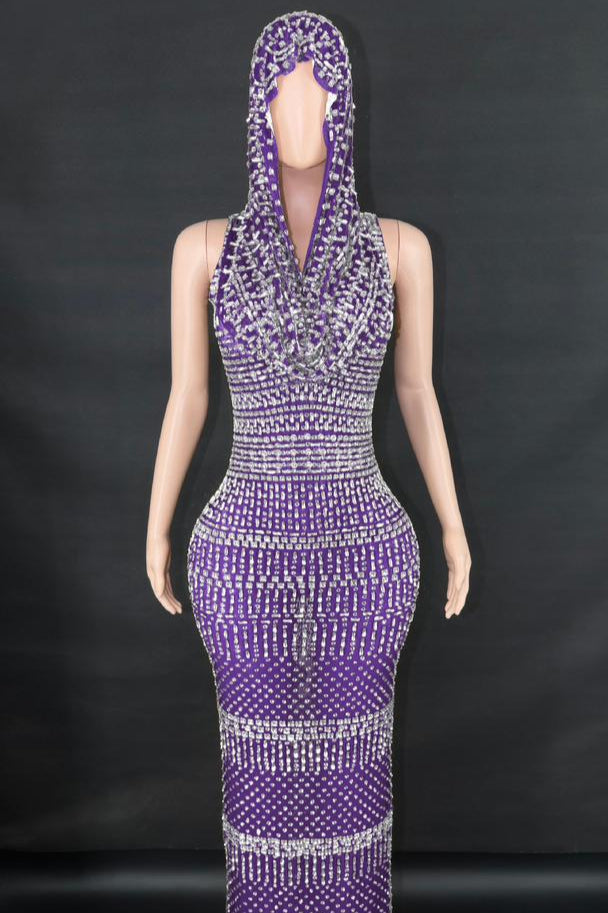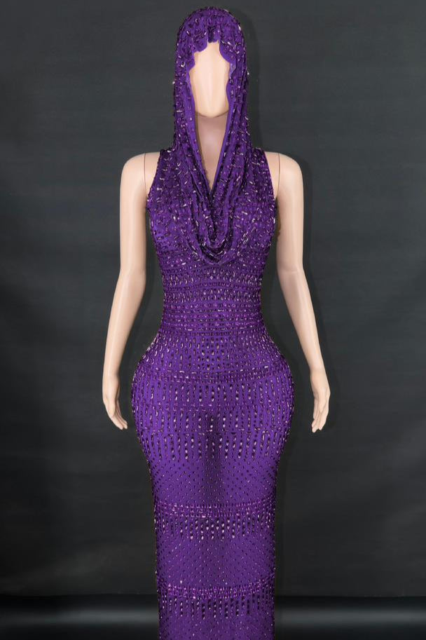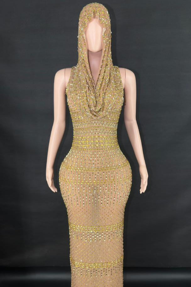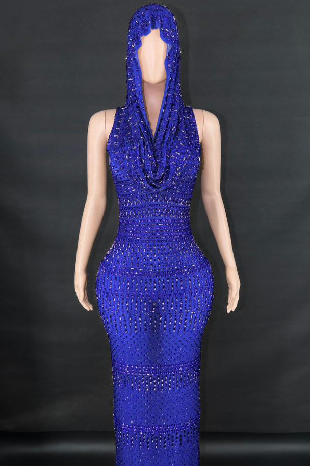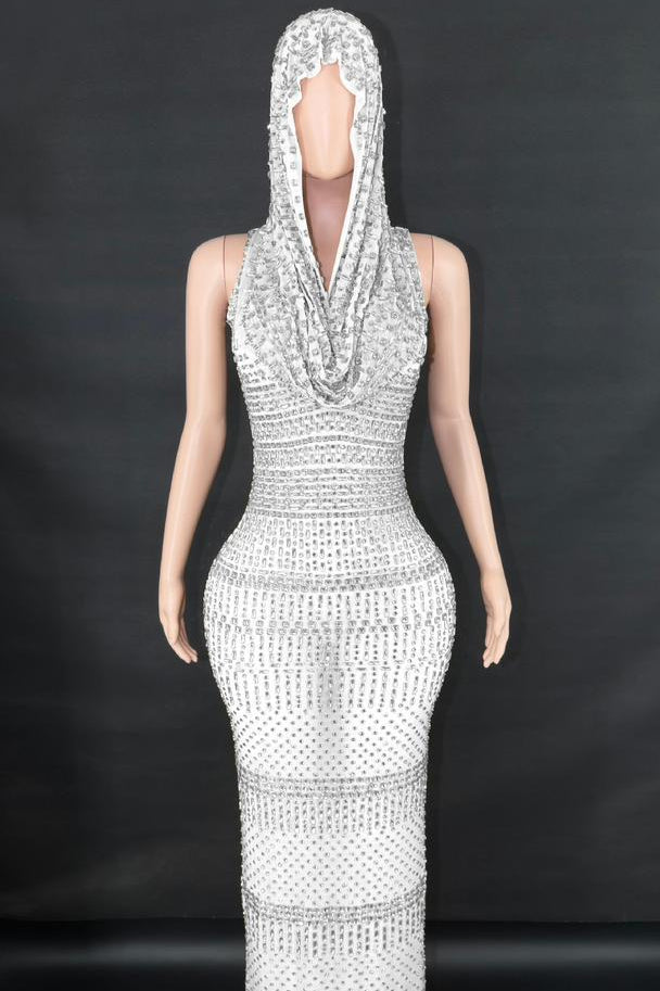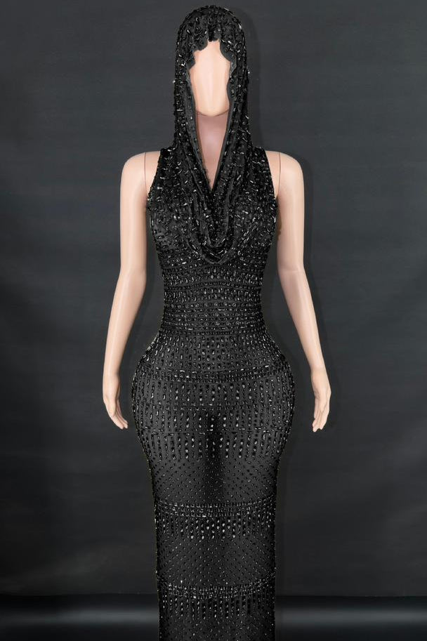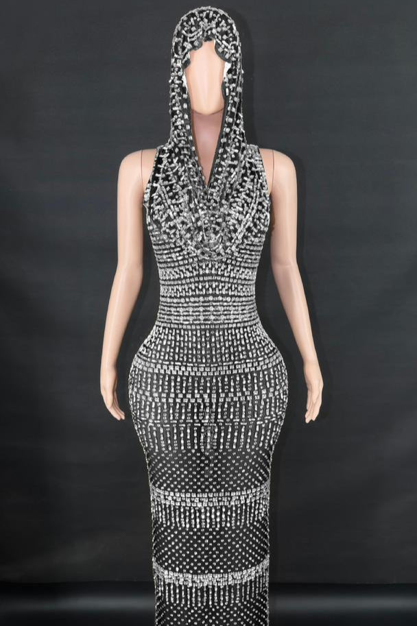 Jessica Bara Serafa Crystal Maxi Dress with Hood