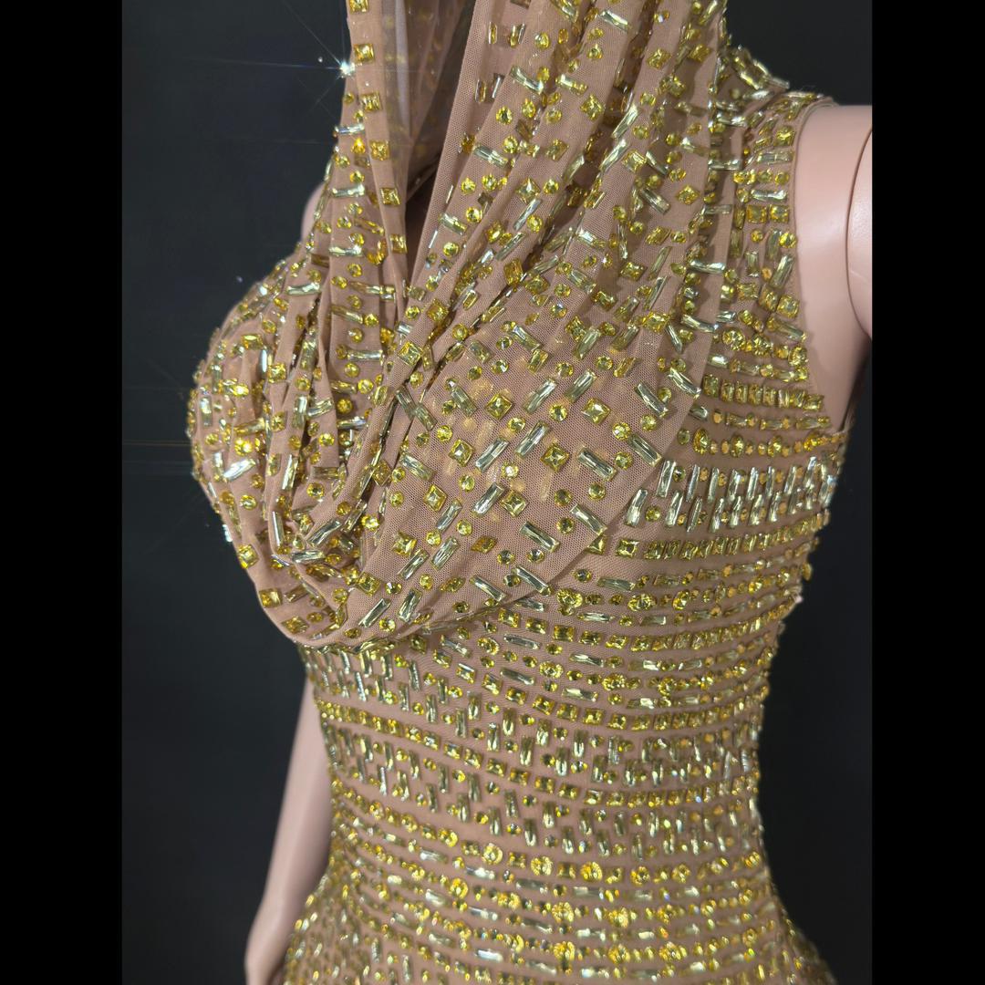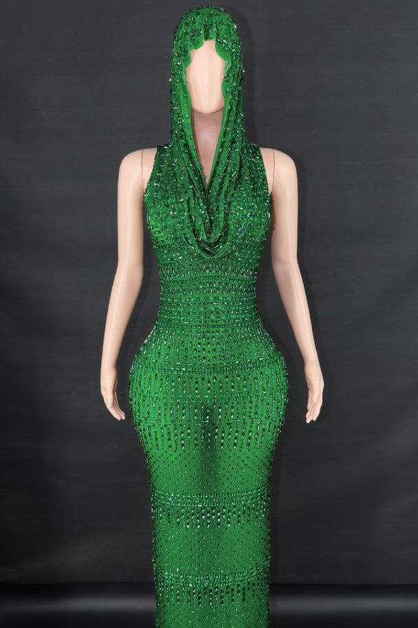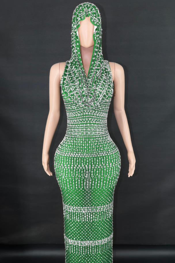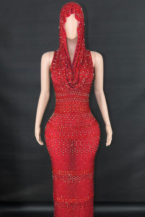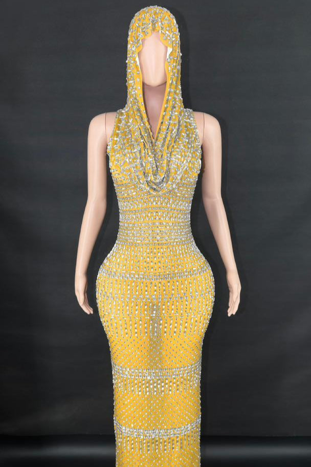 Jessica Bara Serafa Crystal Maxi Dress with Hood
