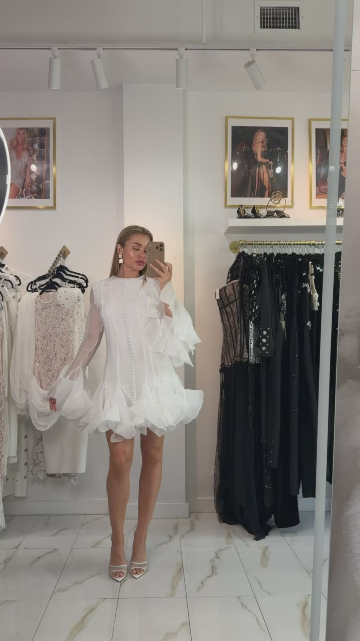 Jessica Bara Akesha Long Sleeve Flare Ruffle Mini Dress