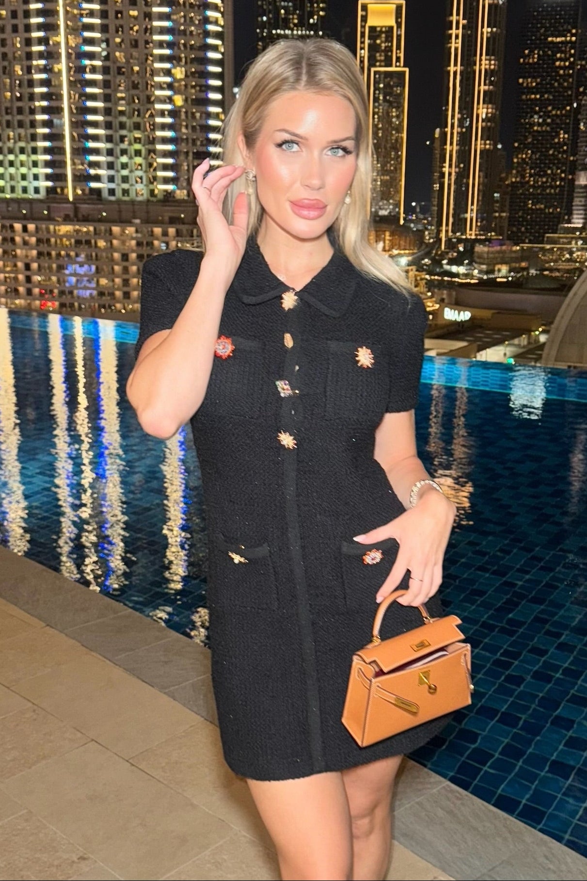 Add a touch of sophistication to your wardrobe with the Jessica Bara Tanella Gold Button Collared Mini Dress. The gold buttons and collared neckline make this mini dress effortlessly chic. Perfect for a night out or a daytime event, this dress will elevate any look with its sleek and stylish design.