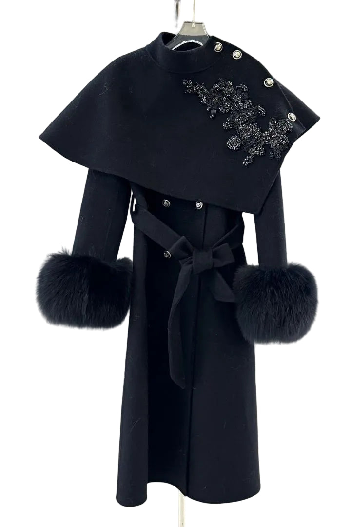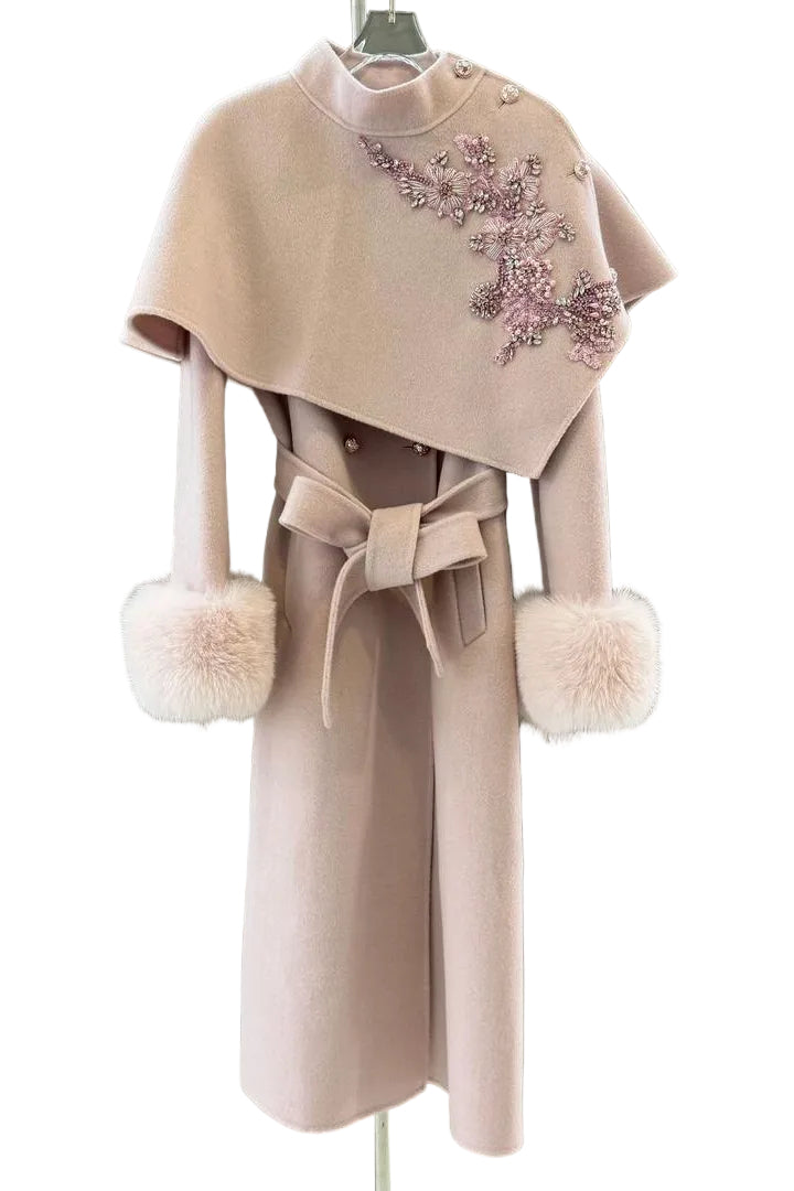 Wrap yourself in botanical elegance with the Ambrosia Crystal Flower Belted Long Coat. This statement piece features delicate crystal flower embellishments that catch the light beautifully, paired with a cinched belt that defines your silhouette. Perfect for elevating everyday looks or making a memorable entrance, this long coat combines whimsical charm with timeless sophistication. Luxuriously draped and designed to turn heads, it's your go-to layer for adding a touch of magic to any outfit.