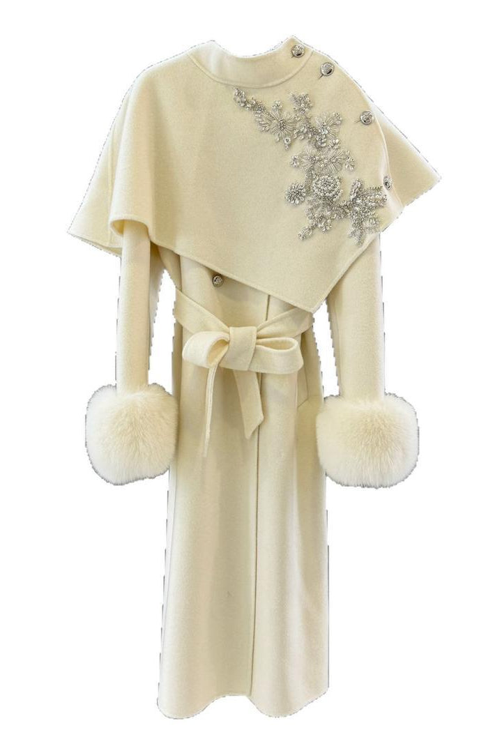 Jessica Bara Ambrosia Crystal Flower Belted Long Coat
