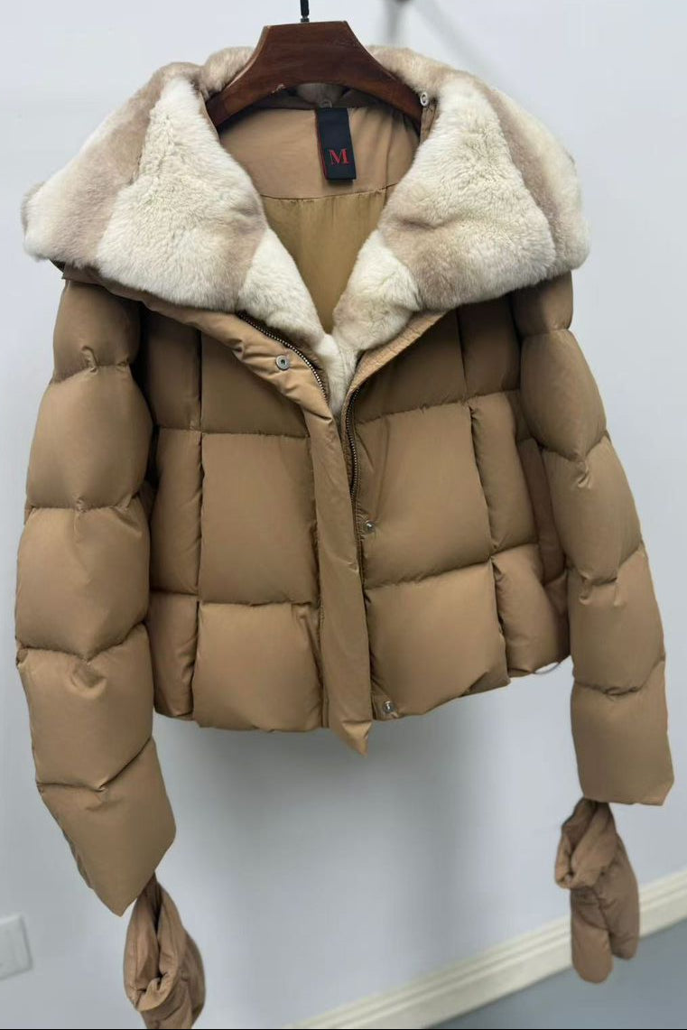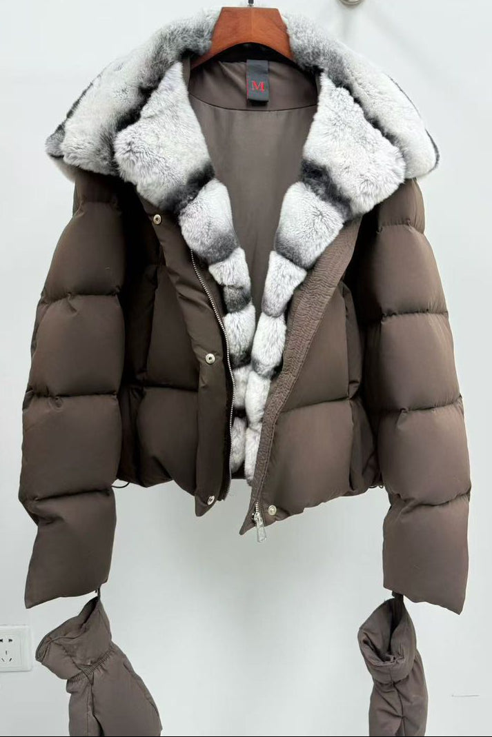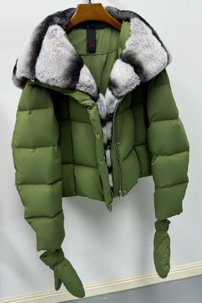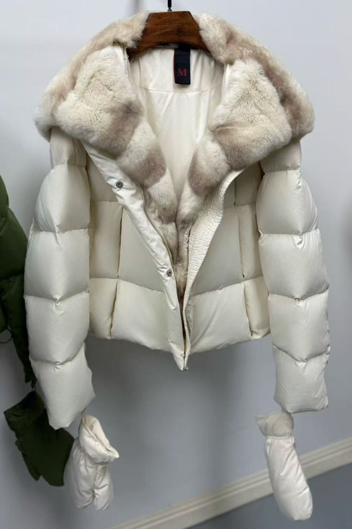Jessica Bara Zandela Fur Puffer Coat with Gloves