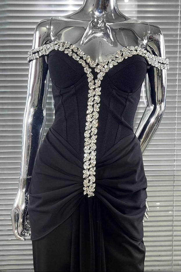 Jessica Bara Azalea Crystal Off The Shoulder Ruched Gown
