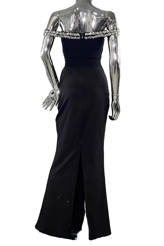 Slip into pure elegance with the Azalea Crystal Off The Shoulder Ruched Gown—where sophistication meets show-stopping style. This stunning piece features delicate crystal embellishments that catch the light beautifully, paired with a flattering off-the-shoulder neckline and expertly ruched detailing that hugs your curves in all the right ways. Perfect for those moments when you want to turn heads and feel absolutely fabulous. Whether you're heading to a gala, wedding, or special celebration, this gown promises to make you the star of the evening.