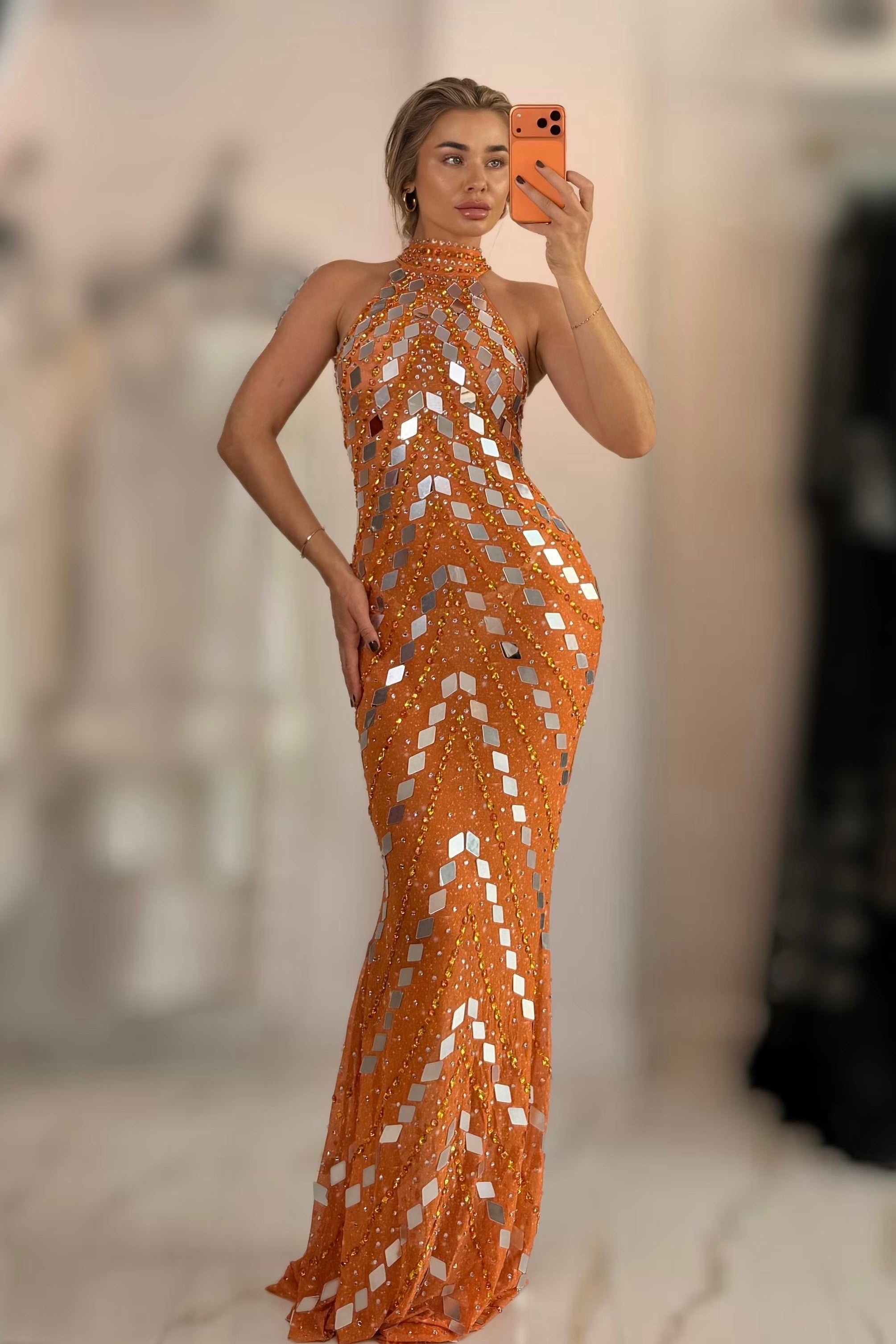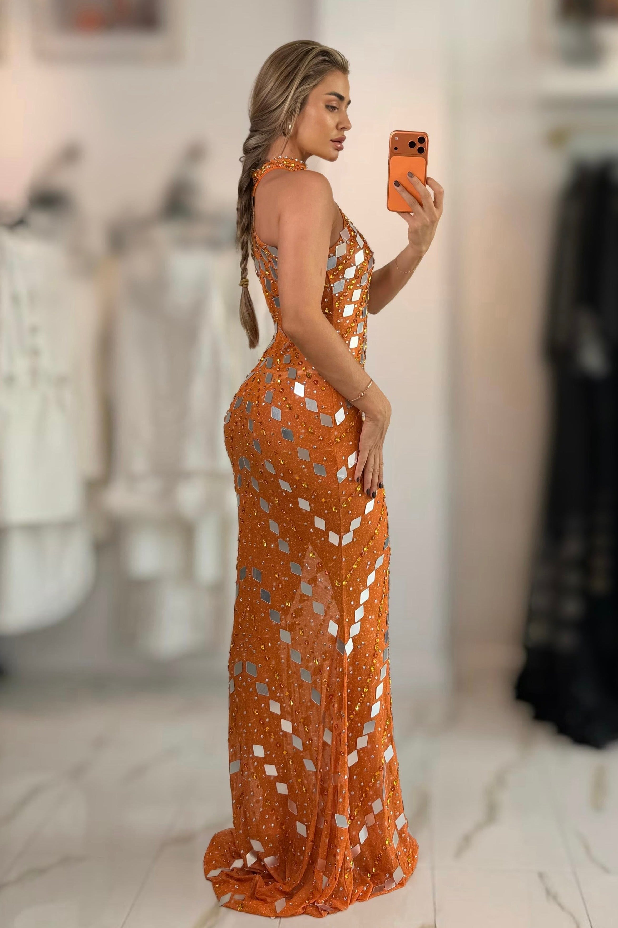 Shine bright and steal the spotlight in the Jessica Bara Ameron Crystal Sequin Gown. This dazzling dress is covered in sparkling crystals that catch every light and eye, perfect for turning heads at any event. Its flattering silhouette hugs your curves while the luxurious sequins add a touch of glam and fun. Ready to dance the night away or make a grand entrance? This gown brings effortless sparkle and playful elegance together just for you.