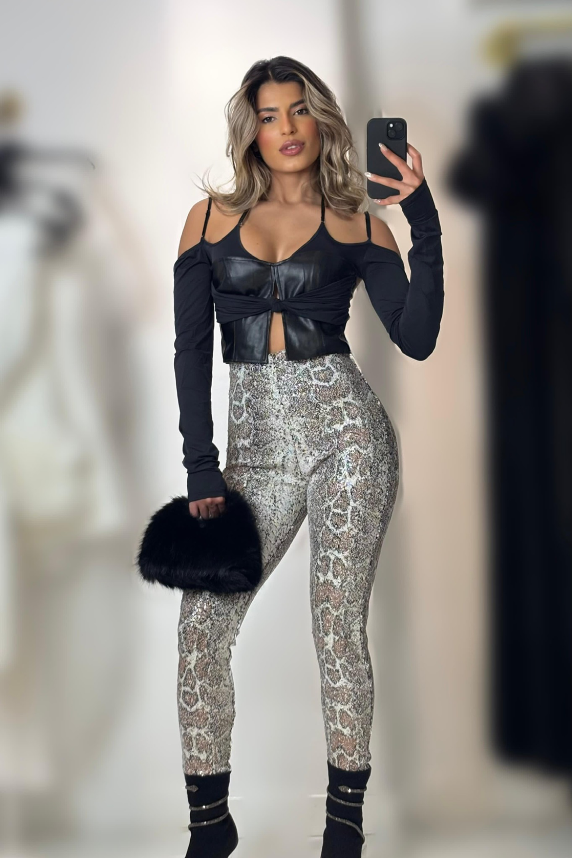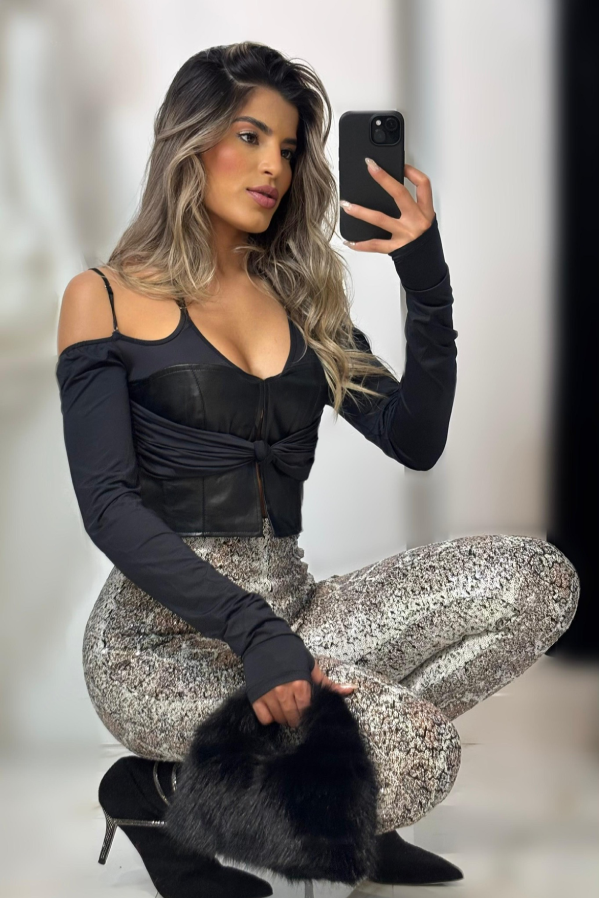 SALE Jessica Bara Leather Long Sleeve Top