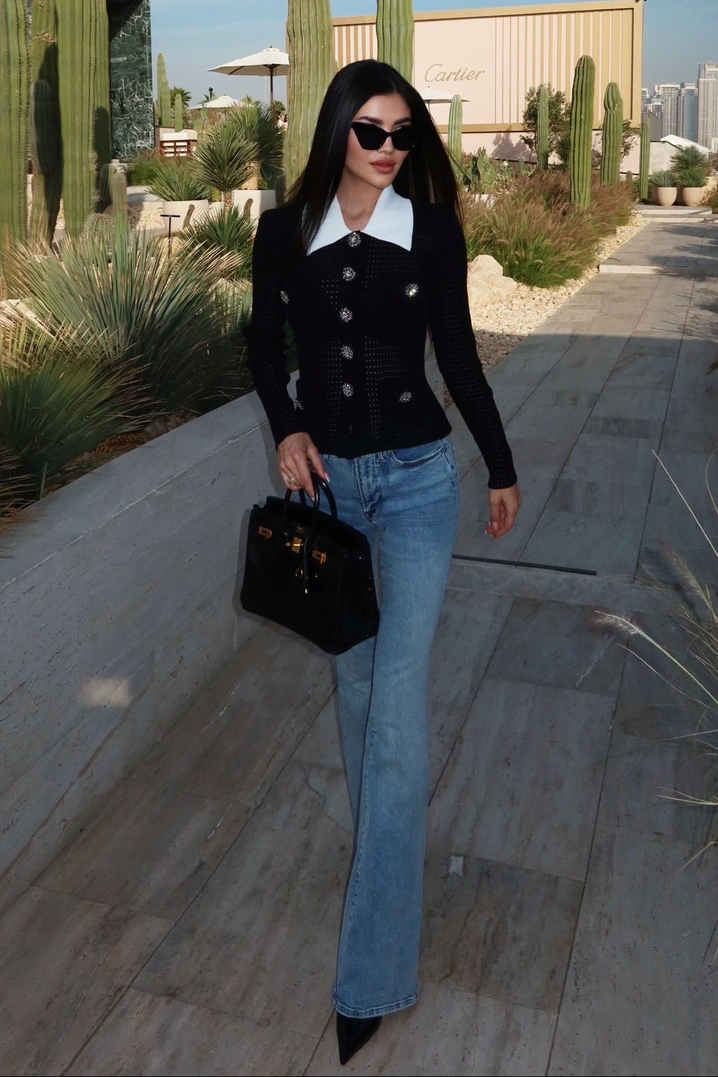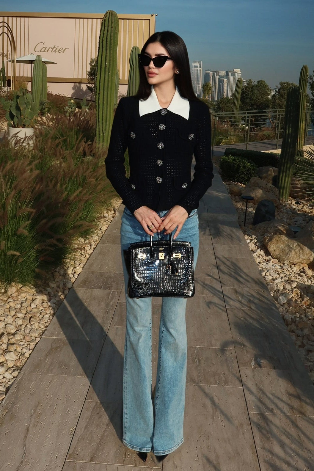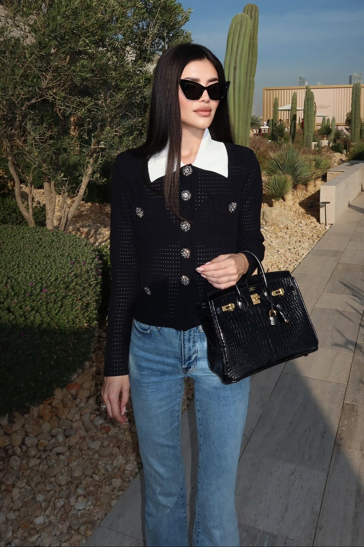 Jessica Bara Katmeza Knit Collared Long Sleeve Top