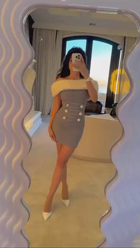 Jessica Bara Tessa Fur Off The Shoulder Mini Dress