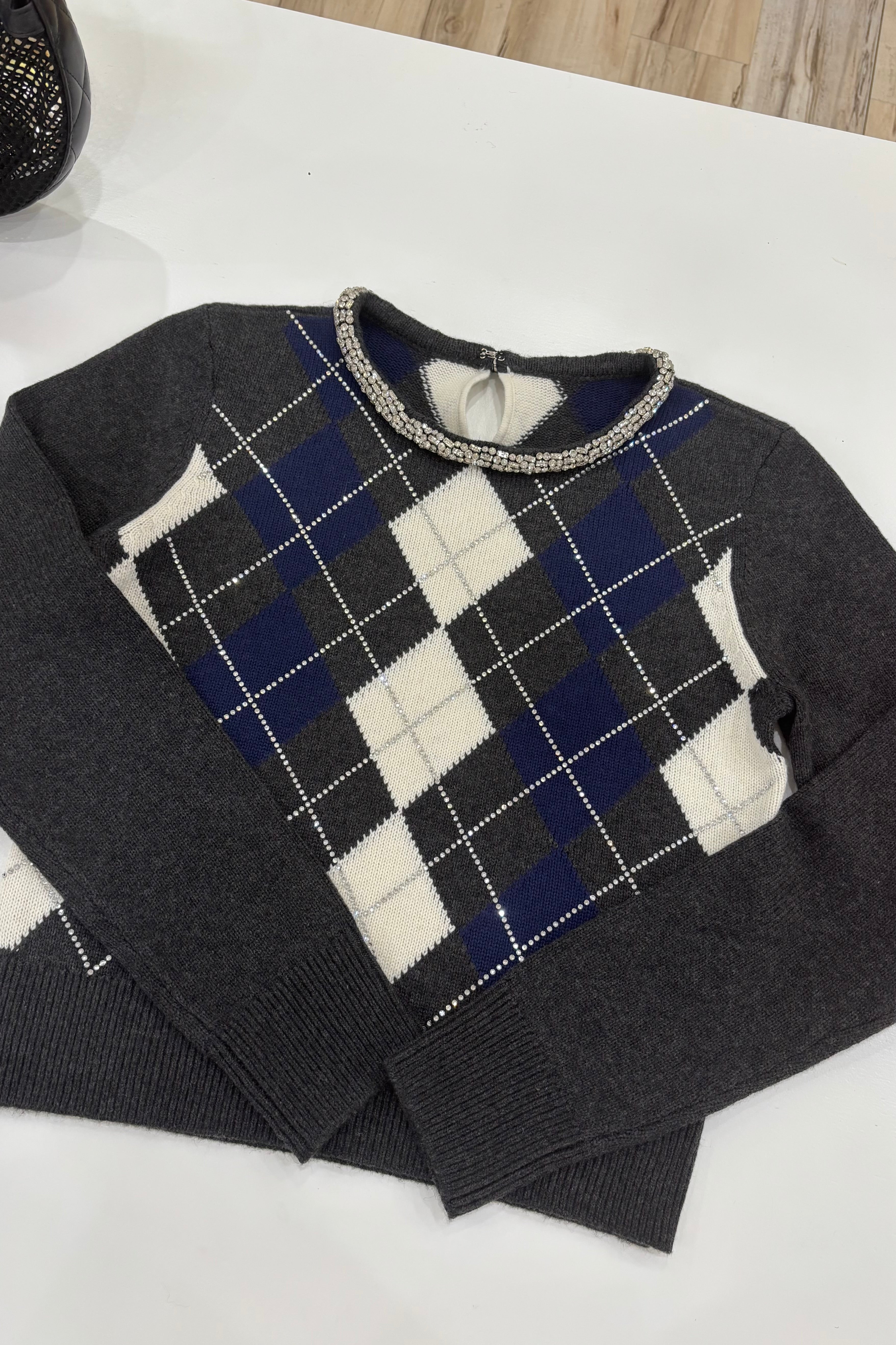 Elevate your everyday style with the Jessica Bara Mirah Crystal Neckline Sweater—where cozy meets glamour. This luxe knit features a stunning crystal-embellished neckline that catches the light beautifully, making it perfect for transitioning from office to evening. The soft, comfortable fit keeps you feeling fabulous all day long, while the eye-catching details ensure you'll turn heads wherever you go. A wardrobe essential that proves you don't have to choose between comfort and sparkle.