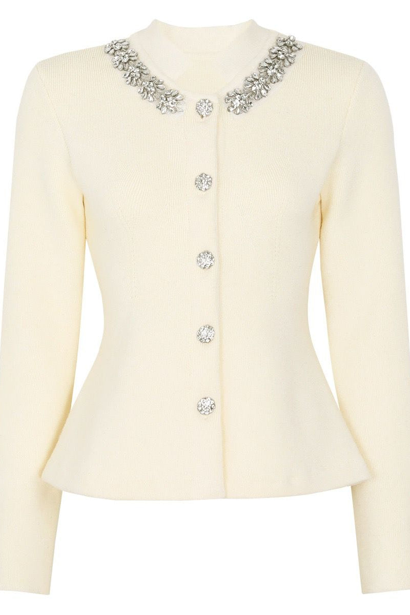 Jessica Bara Mezri Crystal Button Long Sleeve Top