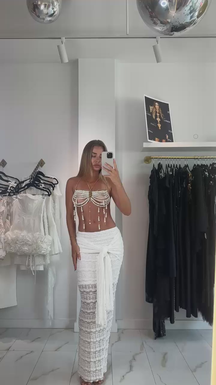 Elevate your style with the Jessica Bara Pilaris Pearl Bra Top! This flirty piece combines comfort with eye-catching design, featuring delicate pearl embellishments that catch the light with every move. Perfect for layering under blazers or showing off at your next night out – because who says pearls can't be playful? Strut your stuff in this head-turning top that's as fun as it is fashionable!