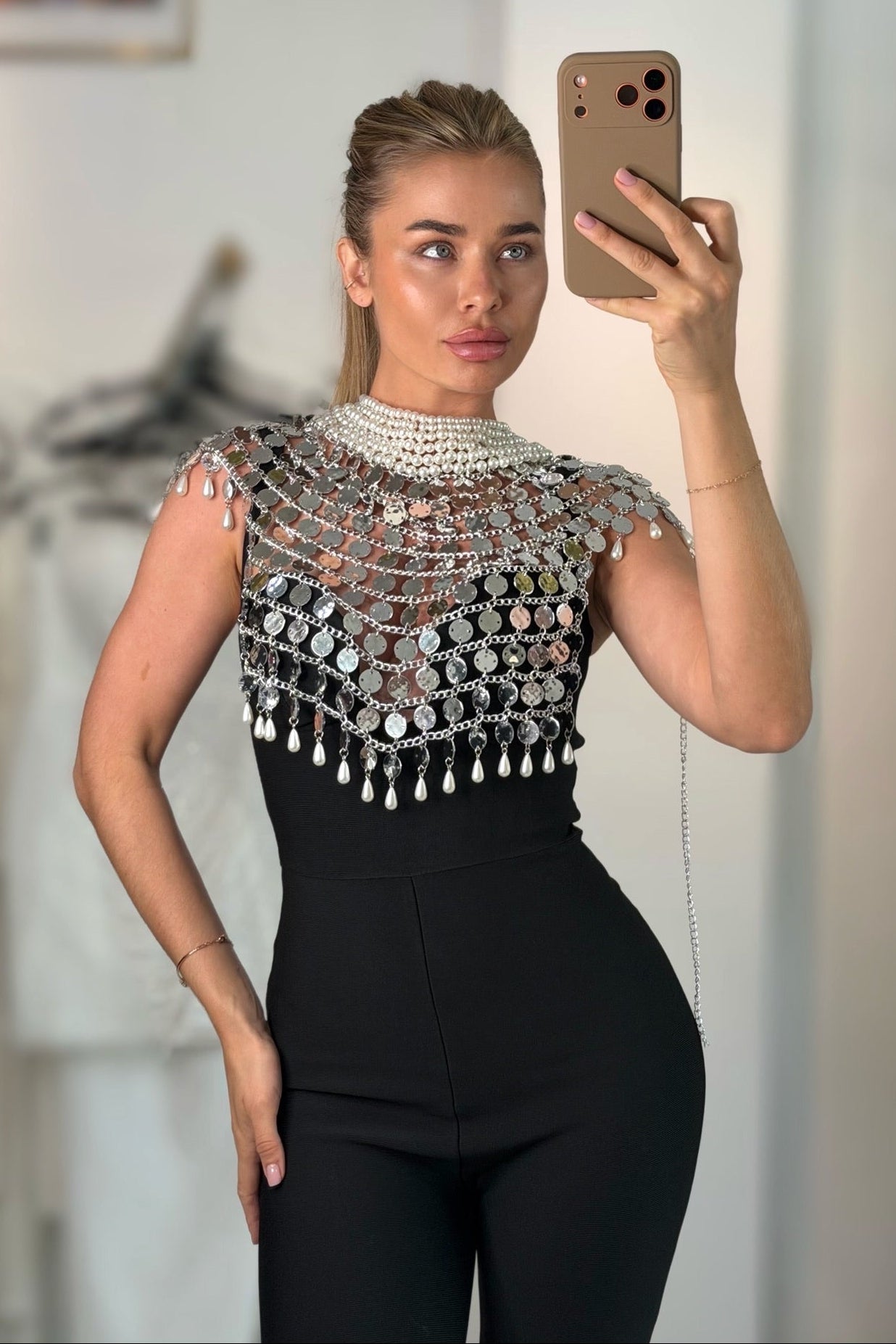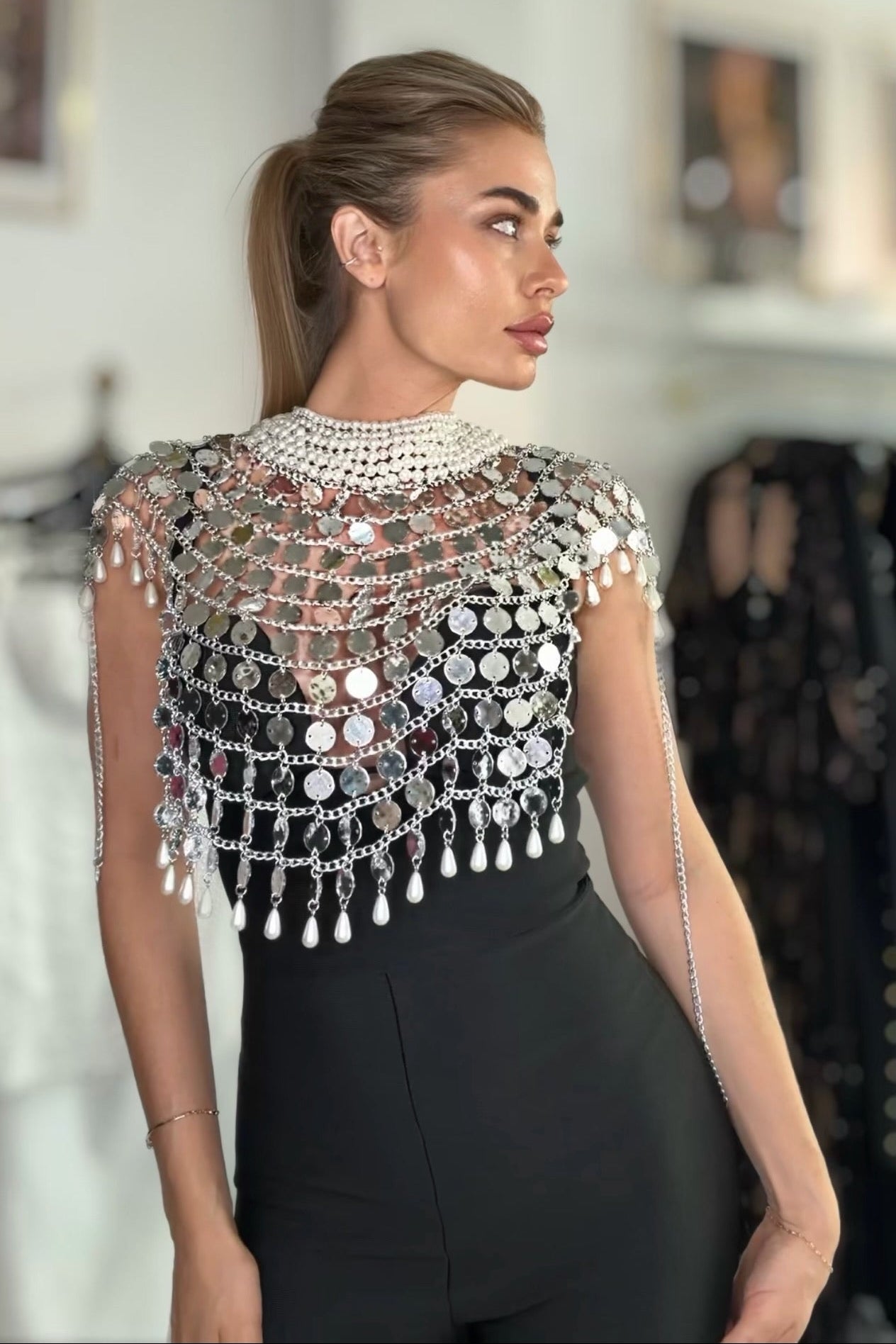 Elevate your style with the Jessica Bara Tulip Metal Chain Top—where elegance meets edge. This statement piece features delicate tulip detailing paired with striking metal chain accents that catch the light beautifully. Perfect for turning heads at any occasion, layer it over your favorite basics or wear it solo for maximum impact. Versatile enough for brunch with friends or a night out, this top brings that perfect blend of feminine charm and bold attitude to your wardrobe.