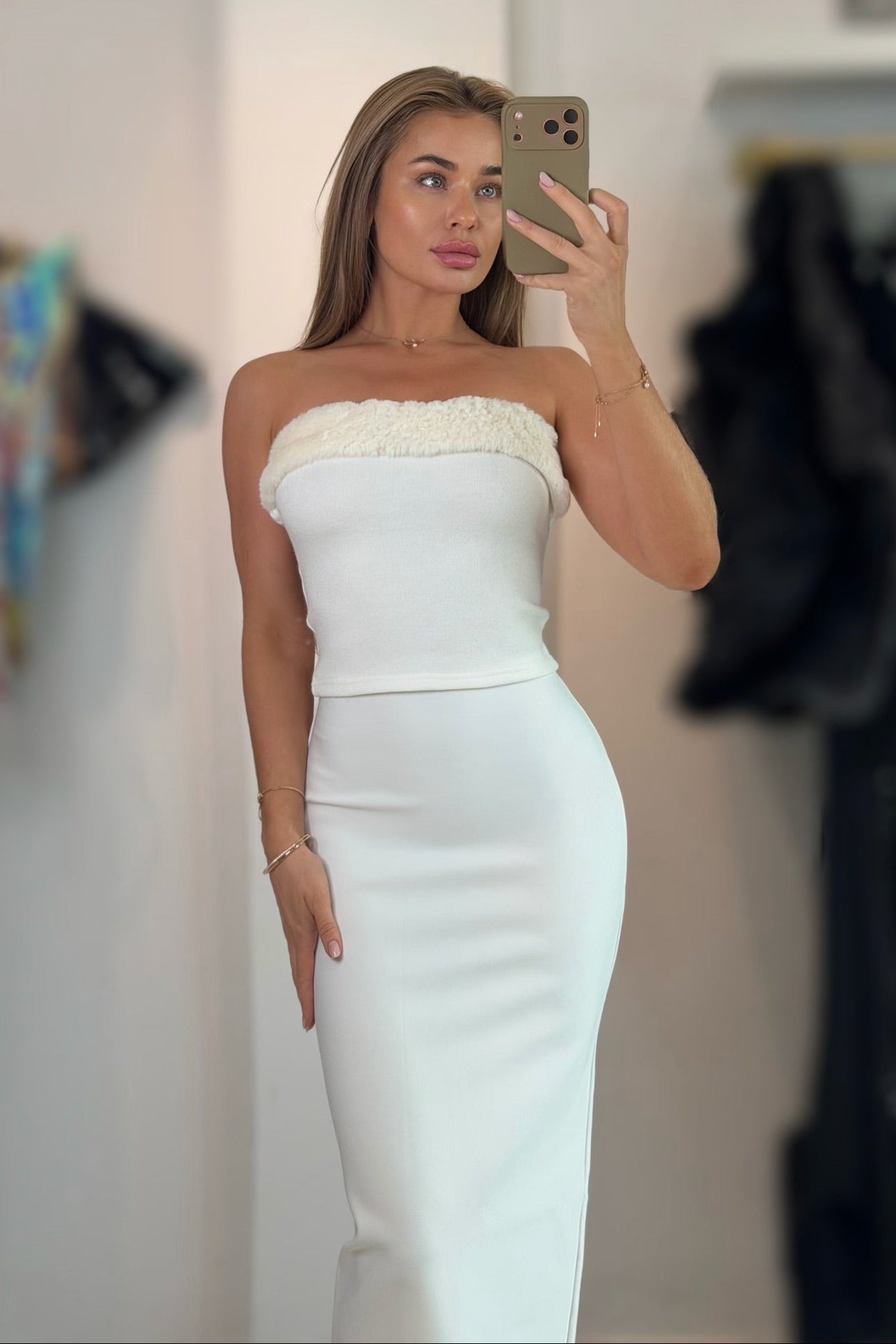 Jessica Bara Wallie Faux Fur Strapless Tube Top