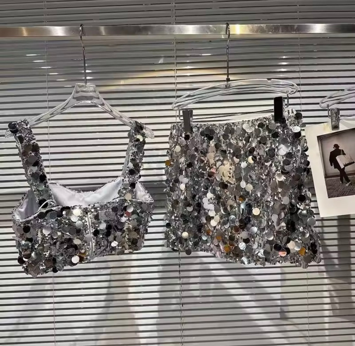 Jessica Bara Dazzy Sequin Crop Top and Mini Skirt Two Piece Set