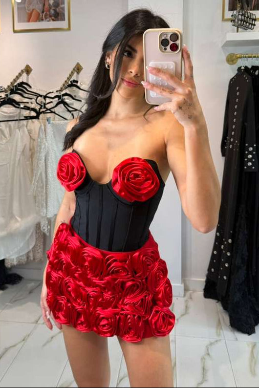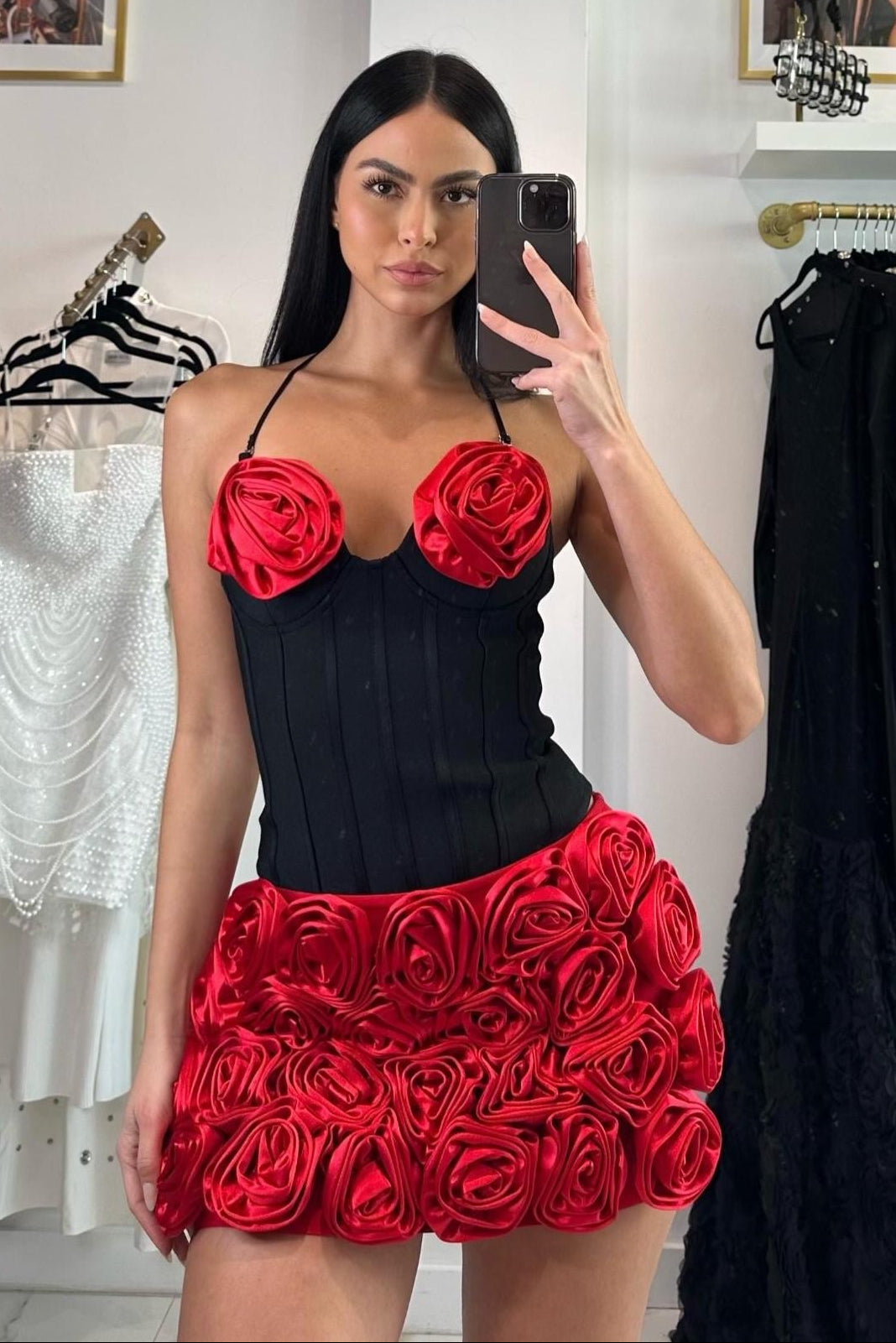 Jessica Bara Hermosa Rose Flower Top and Mini Skirt Two Piece Set