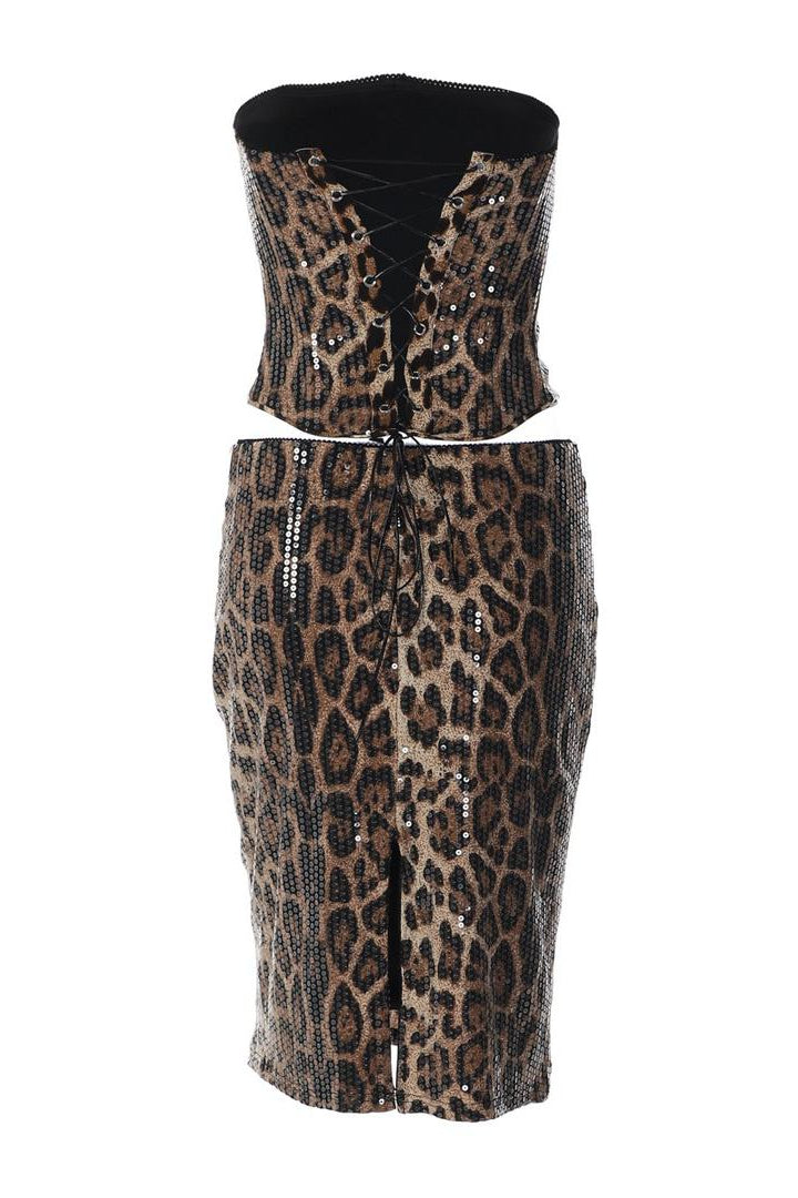 Jessica Bara Leora Leopard Strapless Tube Top and Midi Skirt Two Piece Set