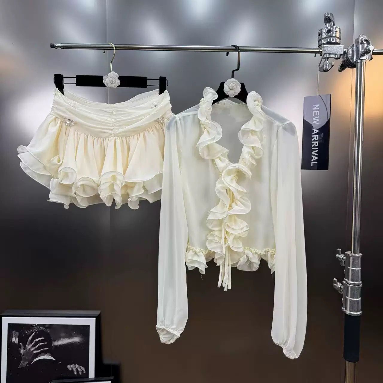 Jessica Bara Lesha Long Sleeve Ruffle Top and Mini Skirt Two Piece Set