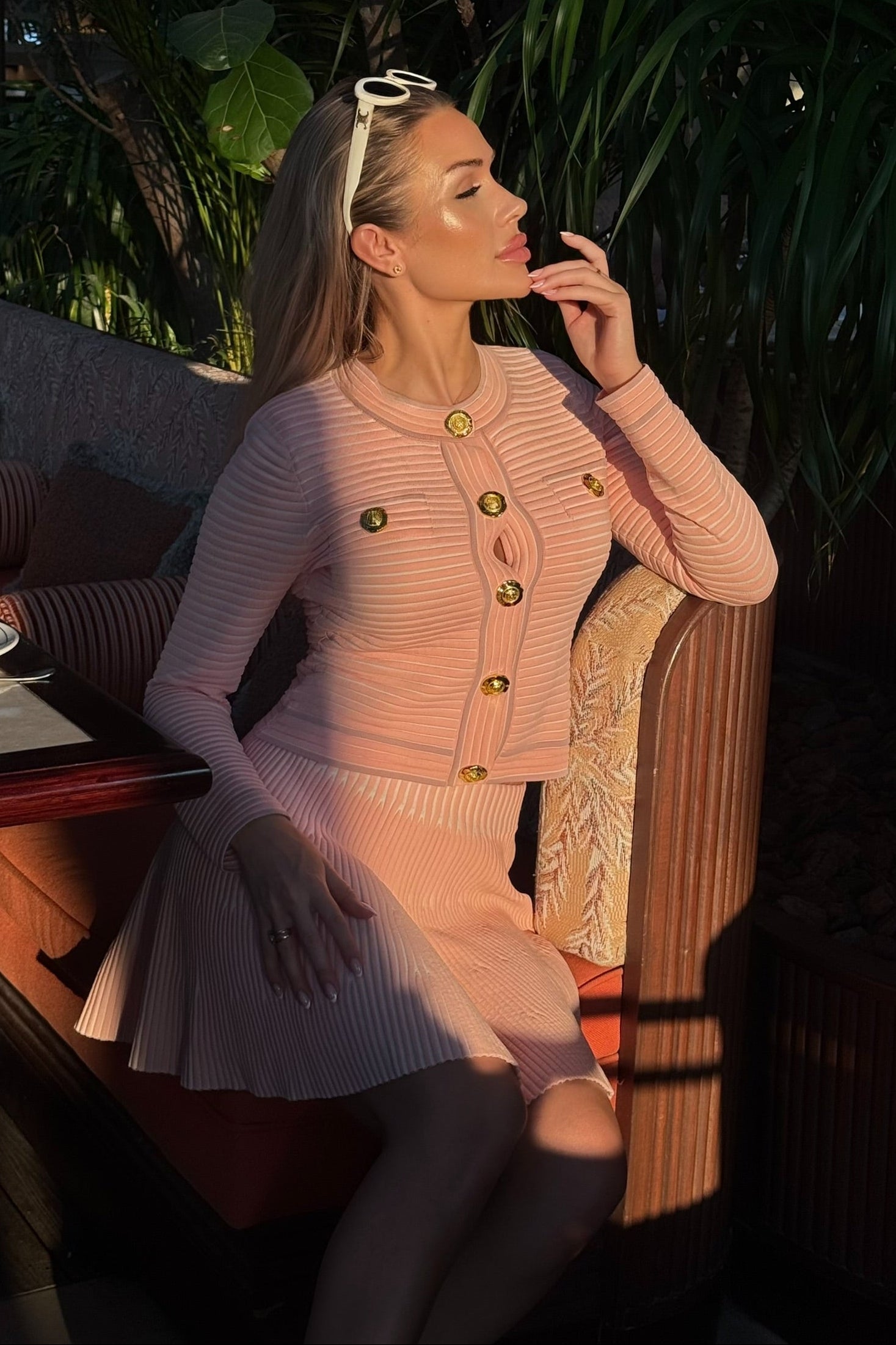 Step out in style with the Jessica Bara Liza Two Piece Set, featuring a chic long sleeve top adorned with gleaming gold buttons and a flirty mini skirt. Perfect for making a statement, this playful ensemble combines elegance with a fun twist, ideal for day-to-night looks that turn heads wherever you go.