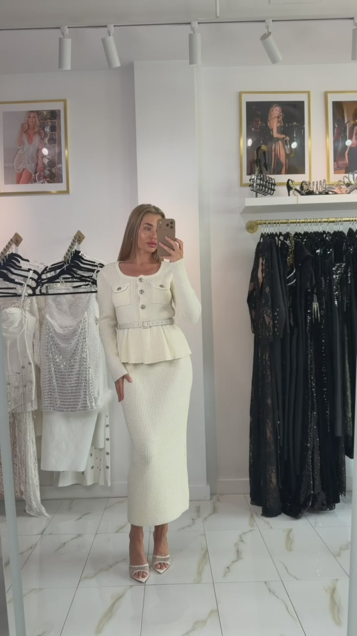 Turn heads with the Jessica Bara Shavida two-piece set featuring a chic long sleeve belted top adorned with eye-catching gold buttons and a graceful maxi skirt. The gold accents add a touch of sparkle, while the belt cinches your waist for a fun, flirty look. Perfect for days when you want to feel confident and effortlessly stylish!