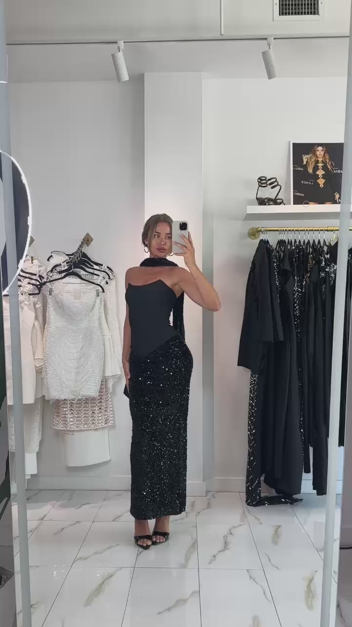 Jessica Bara Shemela Corset Choker Top and Sequin Maxi Skirt Two Piece Set